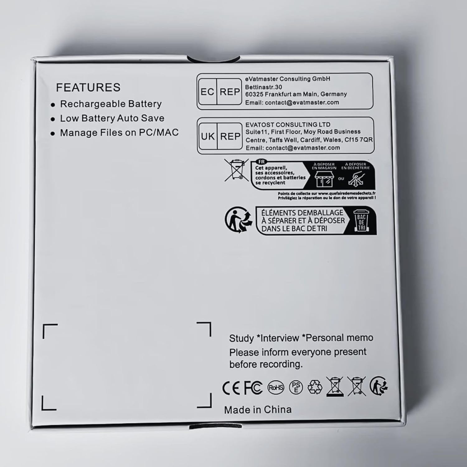 Packing List: 1 x Digital Voice Recorder, 1 x Charging cable, 1 x Headphones, 1 x Manual, Size: 6.7-8.8 inches, all in film packaging. If you encounter any problems during use, please tell us, we will solve the problem for you within 24 hours. Note: Our products only perform recording functions