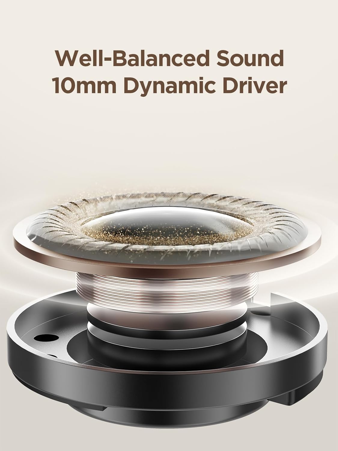 Crystal-Clear Voice Calls – The Q20 wireless earbuds stands out with dual microphones and an AI-powered noise-canceling algorithm, distinctly isolating voices from background sound. Advanced wind noise reduction (WNR) ensures transparent communication, crystal clear even in the elements.