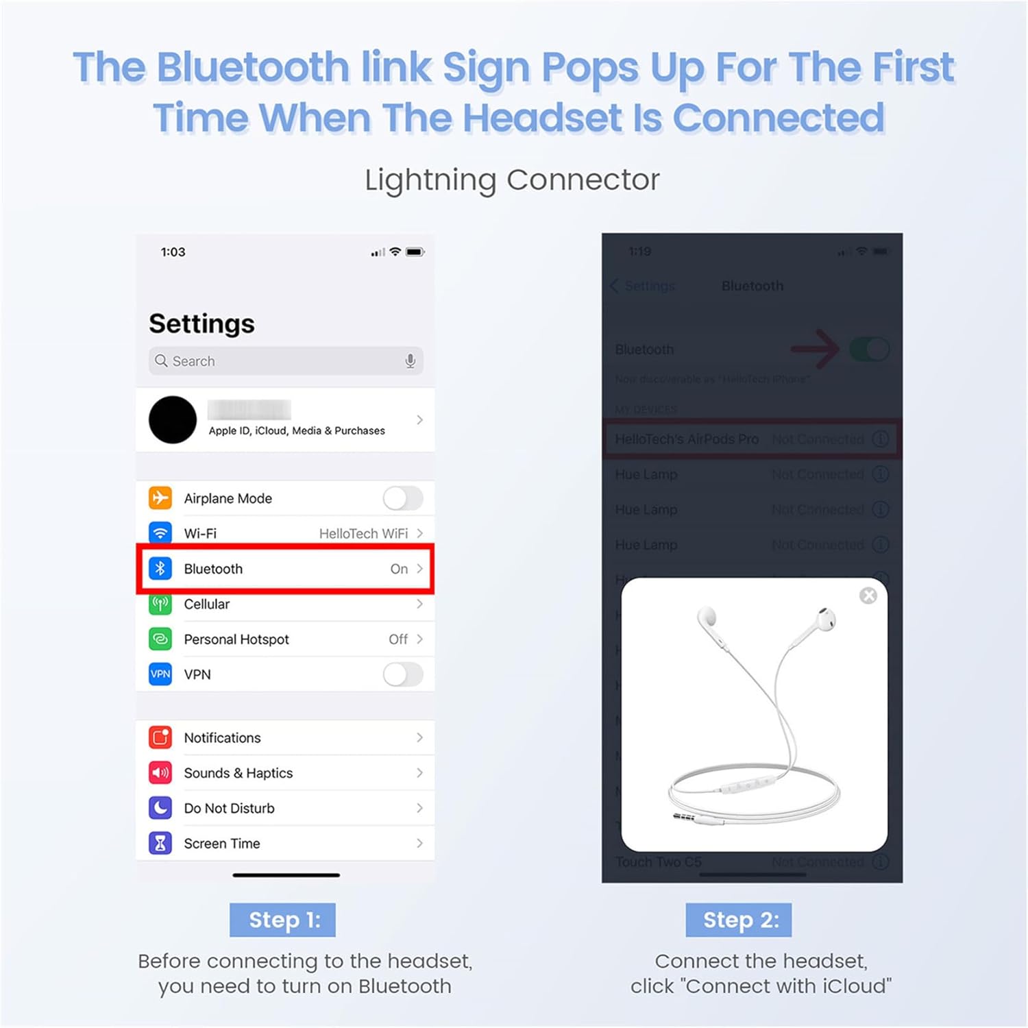 【2024 New Pop-Up Headphones】You need to first open Blue t00th on your phone, then insert the headset into the Phone, a pop-up window will appear in a few seconds, you need to click “Connect with iCloud”. (The second or later insertion of the phone will automatically connect)