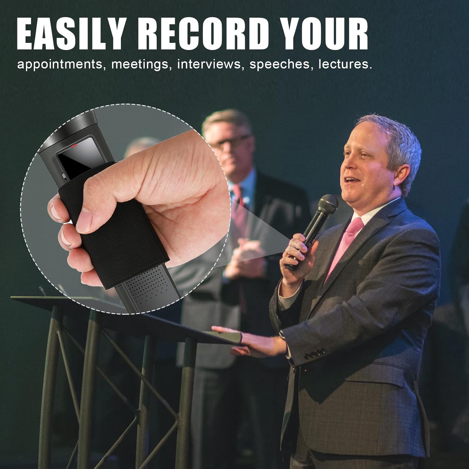 Thoughtful Design: The microphone elastic sleeve has two compartments (1 for the recorder and 1 for the handheld microphone). Made of thick elastic band, with black color, it is not obtrusive, and is a great way to hide your recorder.