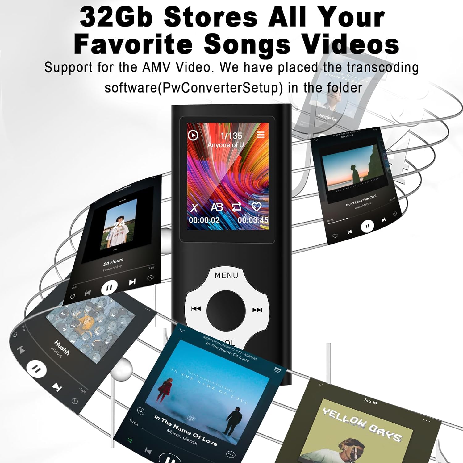 【Large Storage Capacity for Endless Listening】The player comes with 32GB of built-in memory and supports Micro SD card expansion up to 128GB, allowing you to store up to 4,000 songs or a large number of video files. This satisfies your need for a vast music library, making it perfect for traveling, commuting, or exercising, with all your favorite tracks and content at your fingertips.