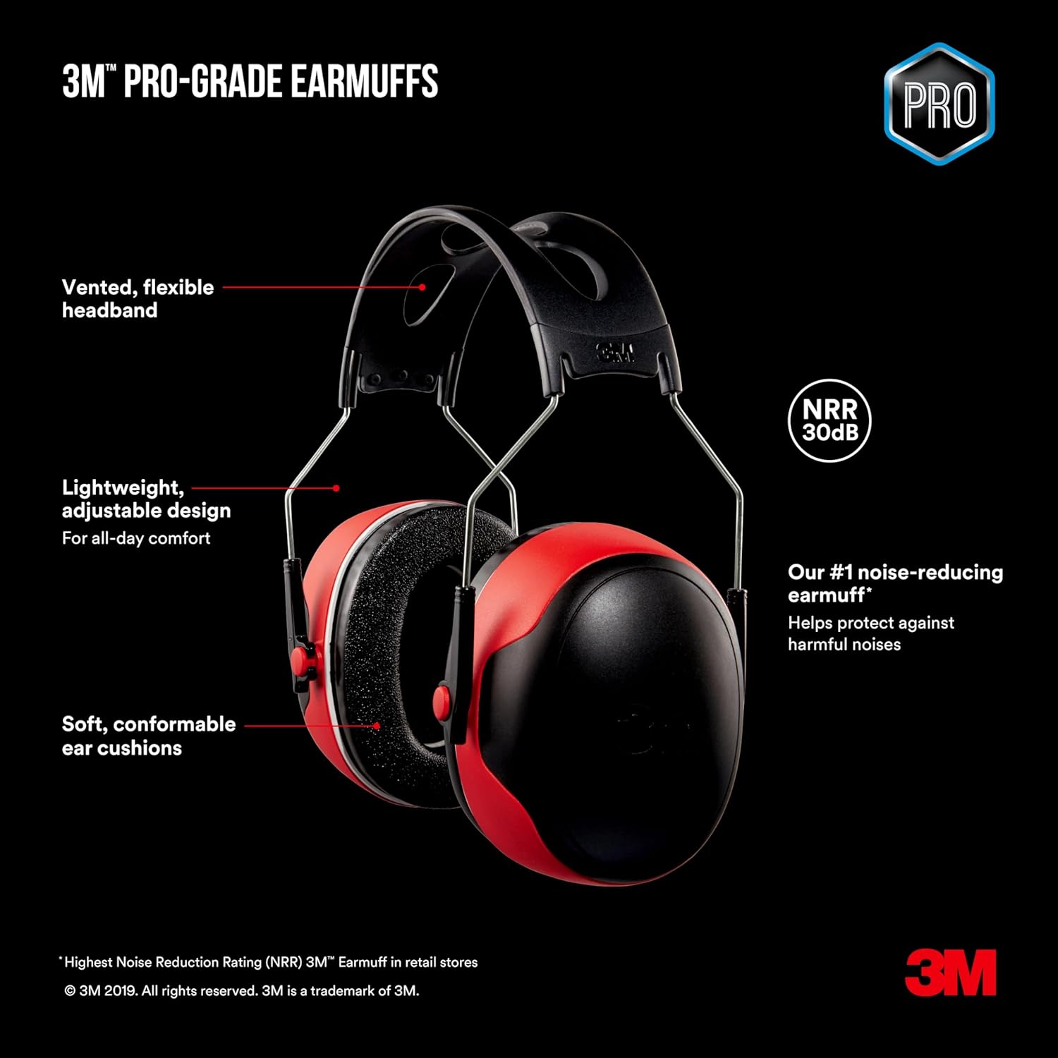 3M Pro Grade Earmuff offers superior comfort and protection. The 3M Pro Grade Earmuff is designed to be a high noise reducing/protection earmuff. Adjustable, vented headband design reduces heat build and improves comfort when worn with hats. Part of the 3M Pro Series Safety Products line that was designed for the way pros think, the way they shop and the way they work