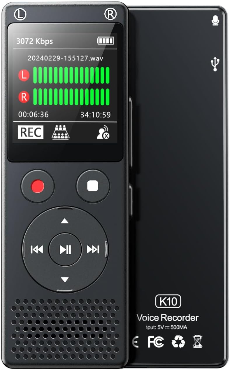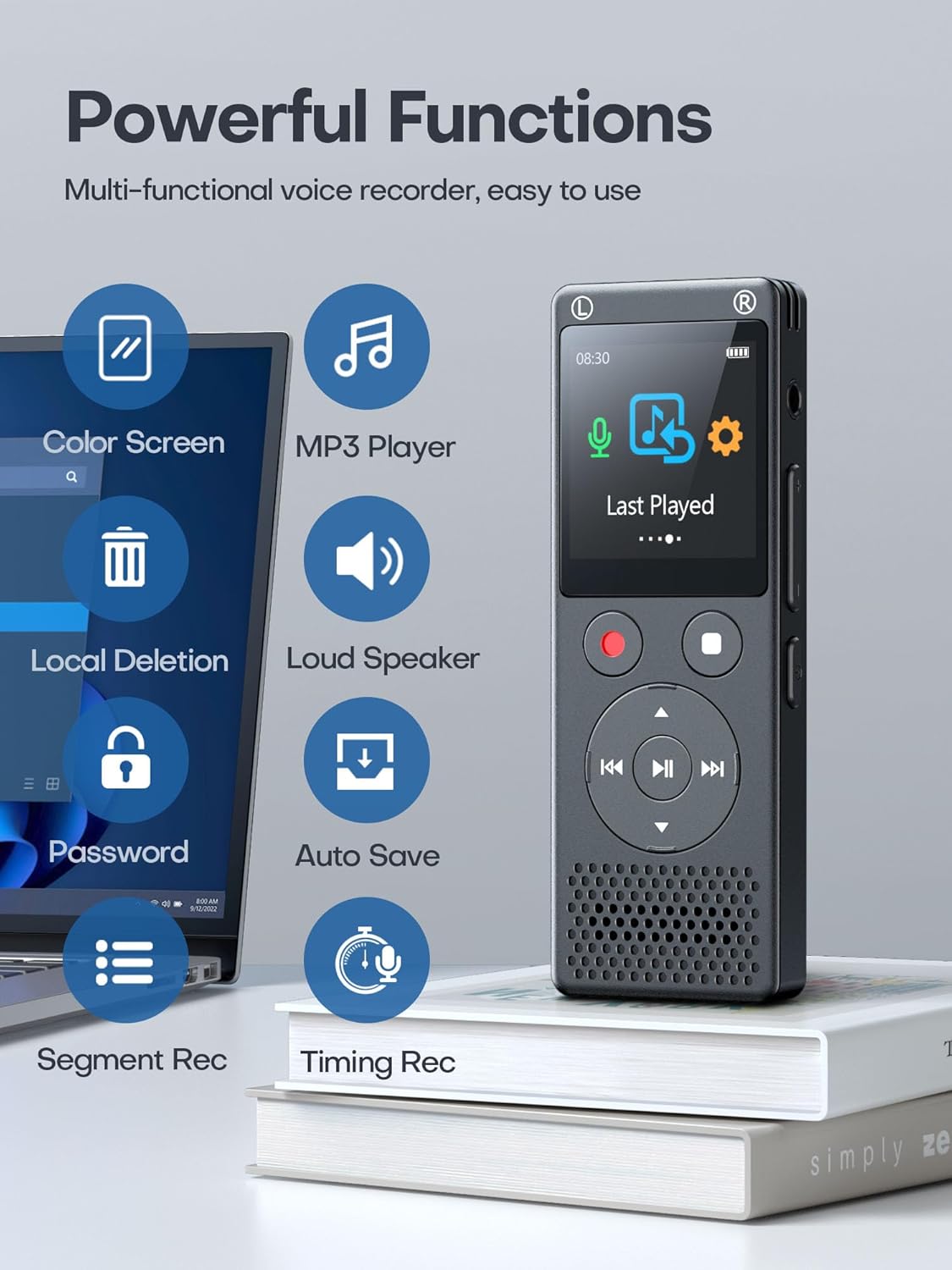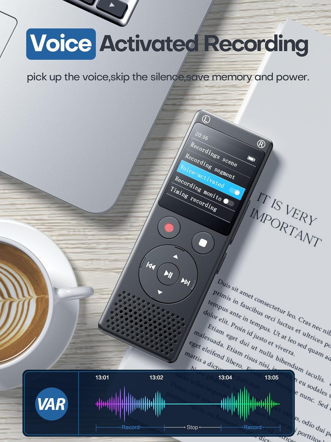 【Quick Recording & Easy Operation】Press the red recording button to start/save recording (When the power is turned on), don’t worry about missing important recordings. The digital voice recorder uses a 1.33-inch HD color display and a sensible button layout that is very easy to operate.