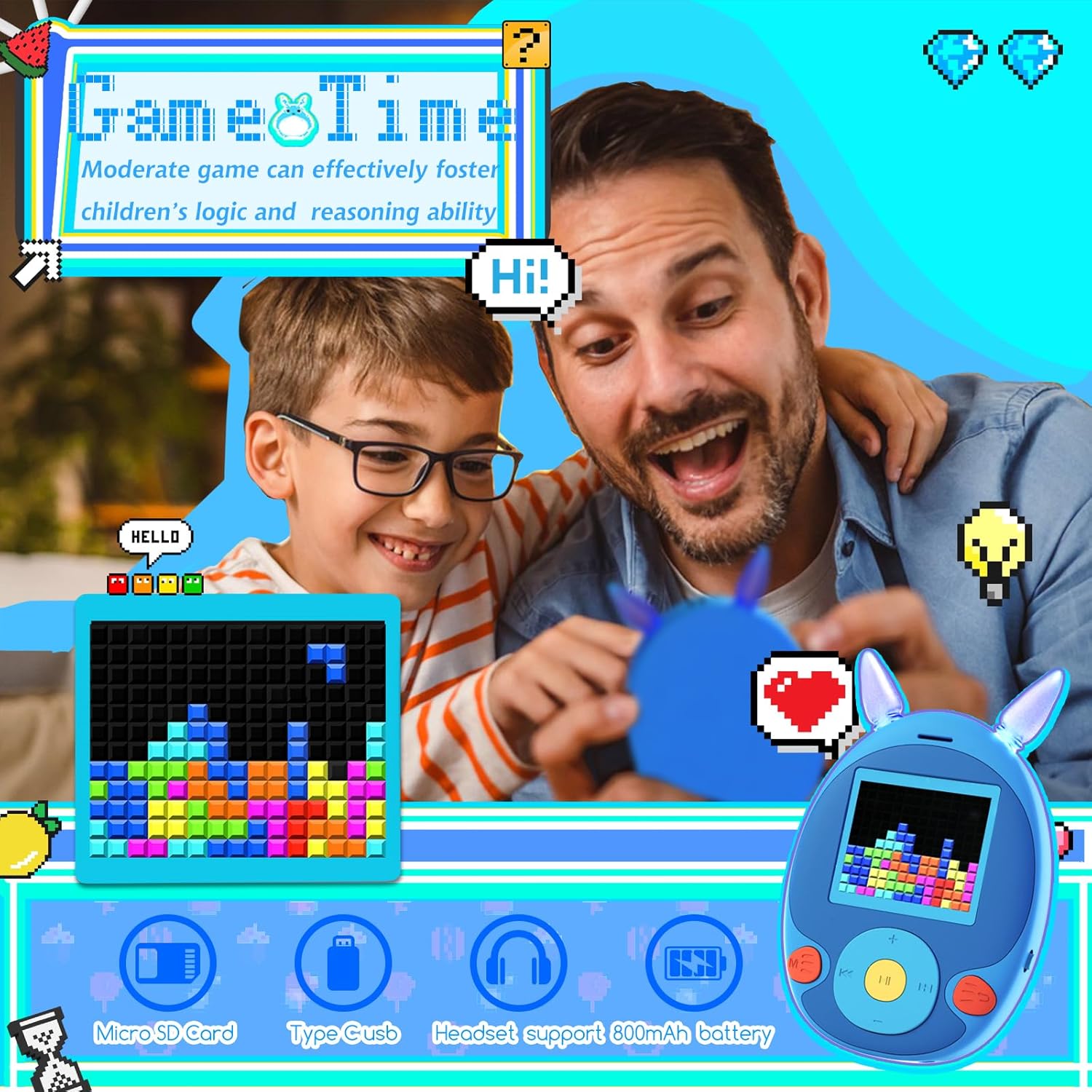 64GB MP3 Player for Kids, Kids MP3 Player with Bluetooth, Speaker, Games, Recorder, Ear Lights,100hrs Loseless Music Playback, Kids Music Player with Earbud, Aux Cable, Lanyard (Blue)