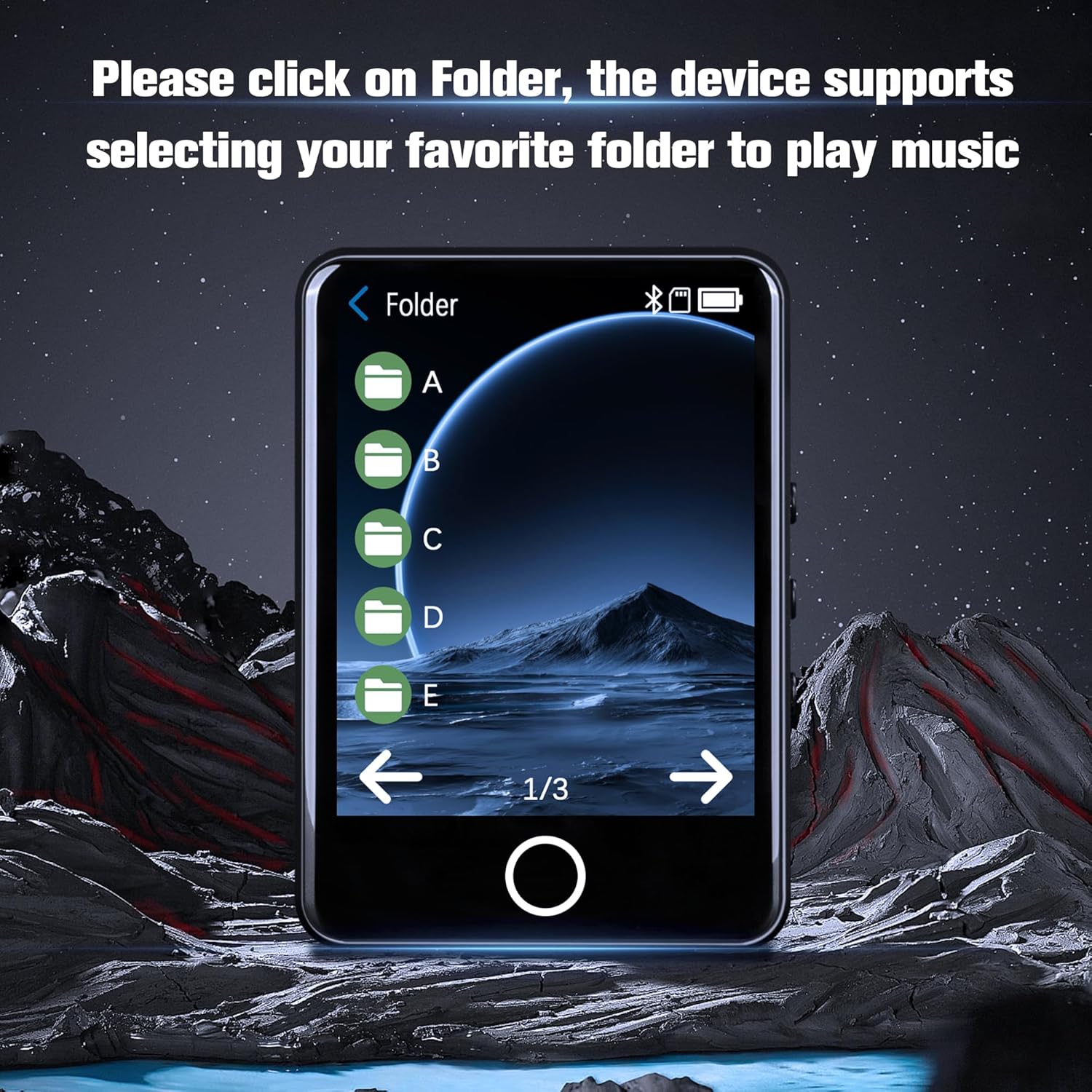 The Bluetooth MP3 player is equipped with a 2.8″ IPS Ultra HD touchscreen with full-screen control and touch, allowing you to operate the MP3 player more smoothly and supporting a one-touch lock screen.