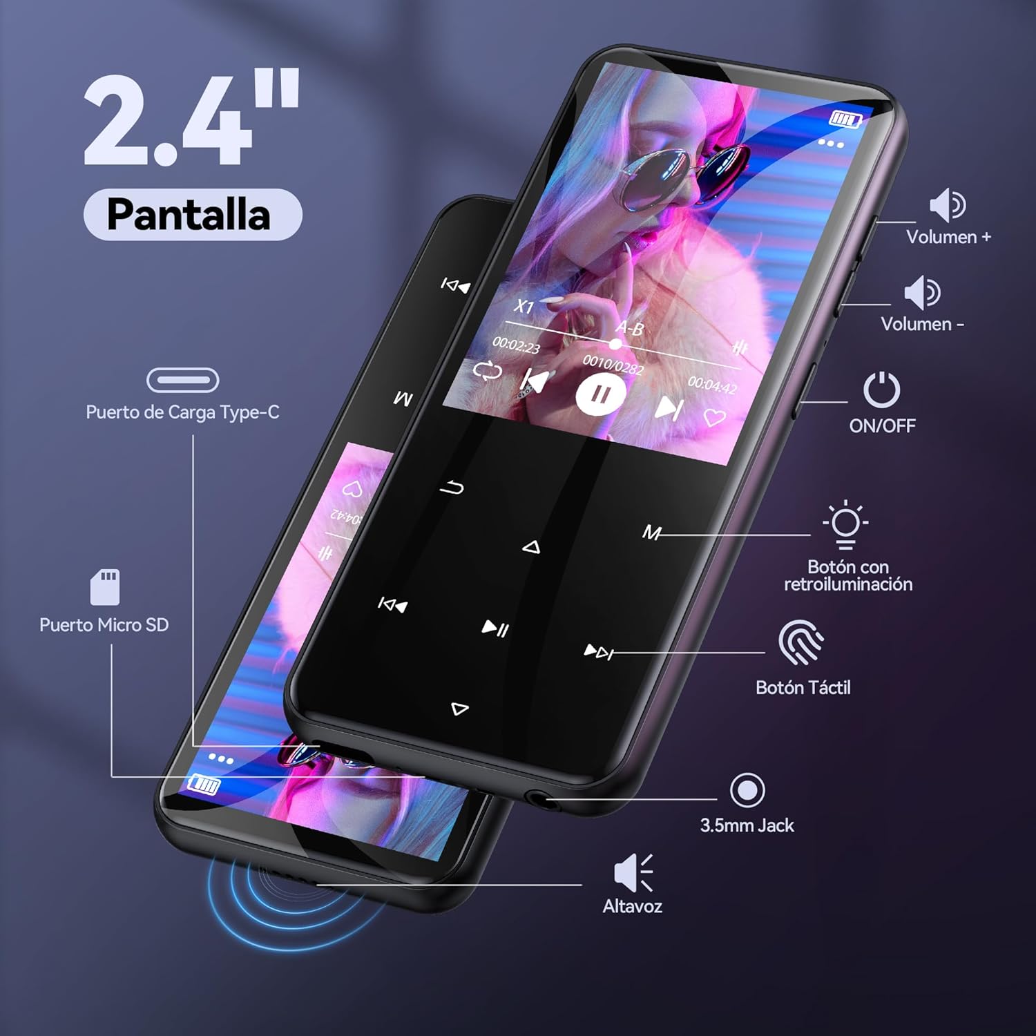 AGPTEK 64GB MP3 Player with Bluetooth, M3 2.4 inch Music Player with Speaker and FM Radio, Touch Buttons, Supports Up to 128GB