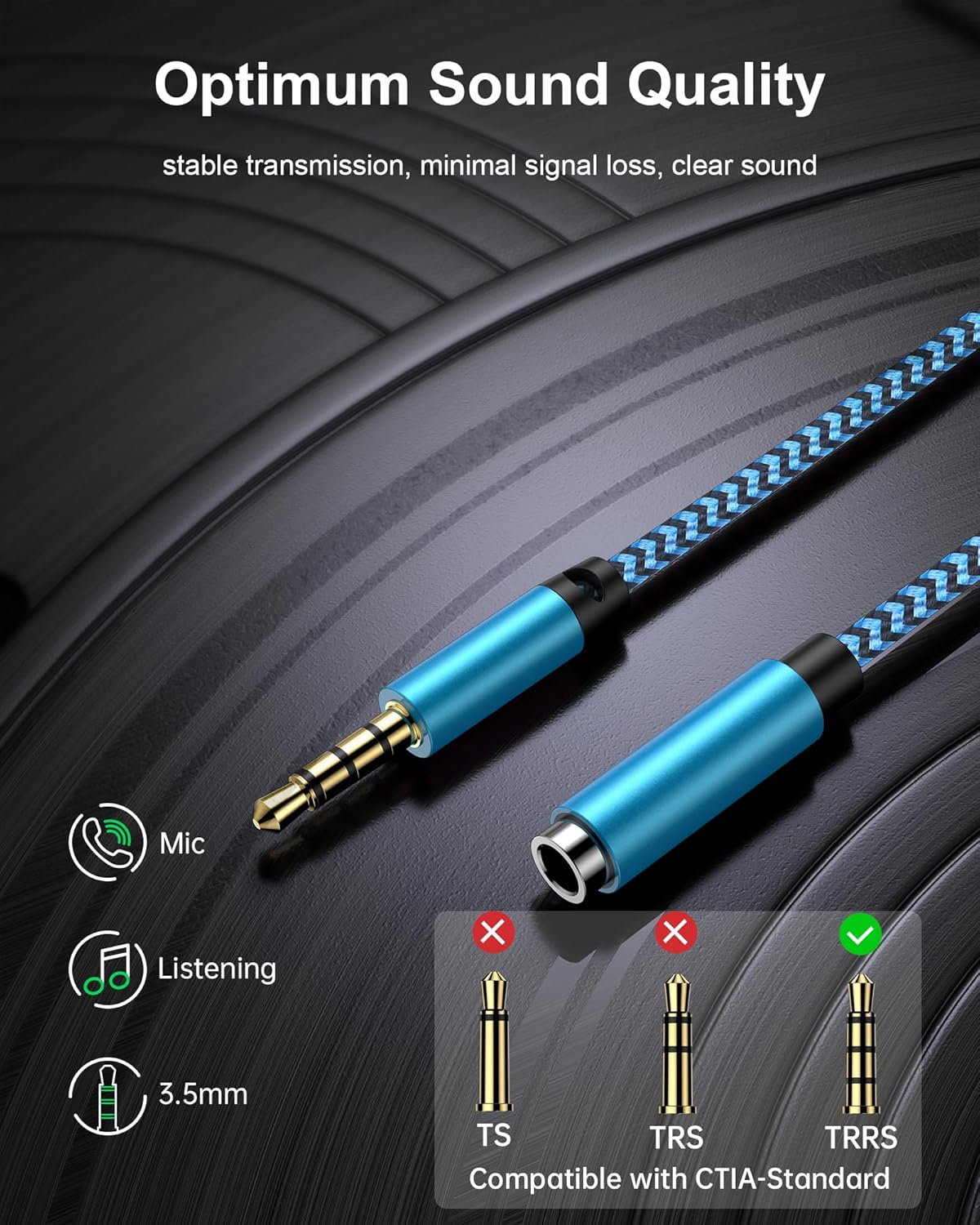 🎤TRRS Extension Cable: Our TRRS extension cable follows strictly with CTIA standards. With its 4-conductor design (Tip, Ring, Ring, Sleeve), it can easily link with both 3-pole and 4-pole 3.5mm audio devices. Compared with conventional TRS (3-Pole) extension cables, having a cable that supports both audio and microphone channels is essential for those who are in activities like video calls, conferences, or gaming.