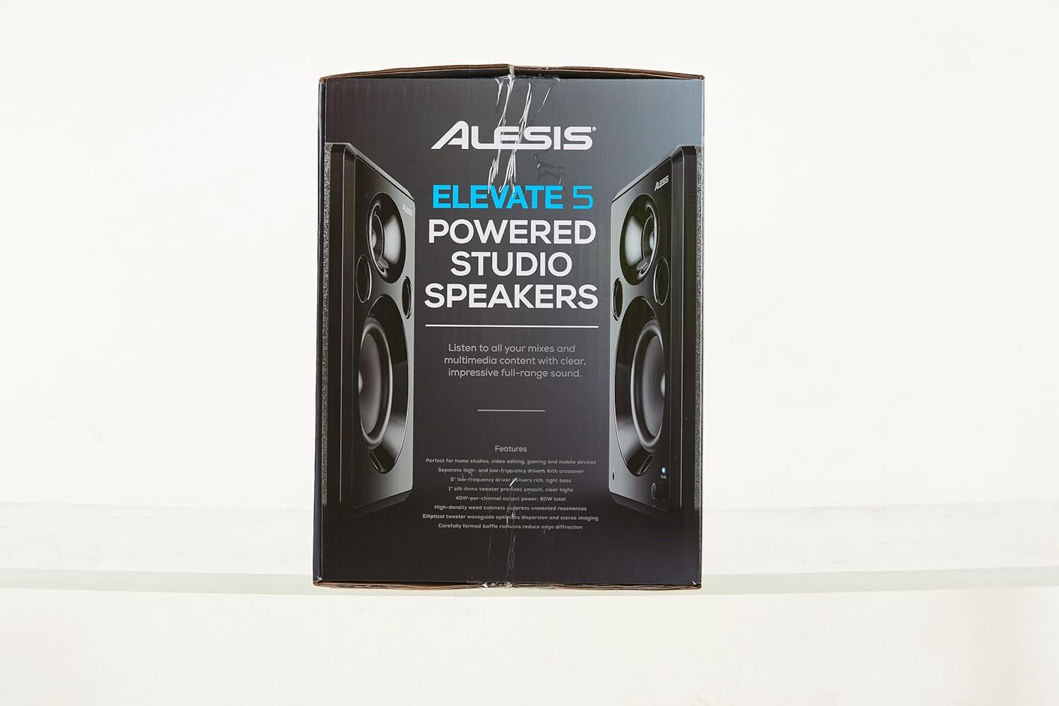 Alesis Elevate 5 studio speakers enable you to listen to mixes, masters and multimedia content with impressive clarity and warm, full sound. Elevate 5 speakers bring out every detail of your sound, unencumbered and crystal clear. Their custom wooden cabinets have a dense construction that provides natural bass. Elevate 5 studio speakers contain powerful, five-inch woofers, crisp, one-inch silk-dome tweeters and dedicated power. Alesis engineers carefully selected and tuned these crucial components to work in concert as a single unit within the custom wood cabinet to deliver full lows, clean highs and a detailed compelling stereo image. Unlike passive speakers, Elevate 5 speakers have a volume knob built right in to the front panel for easy control. Packaged in stereo-matched sets, Elevate 5 studio speakers give you everything you need, all in one box.