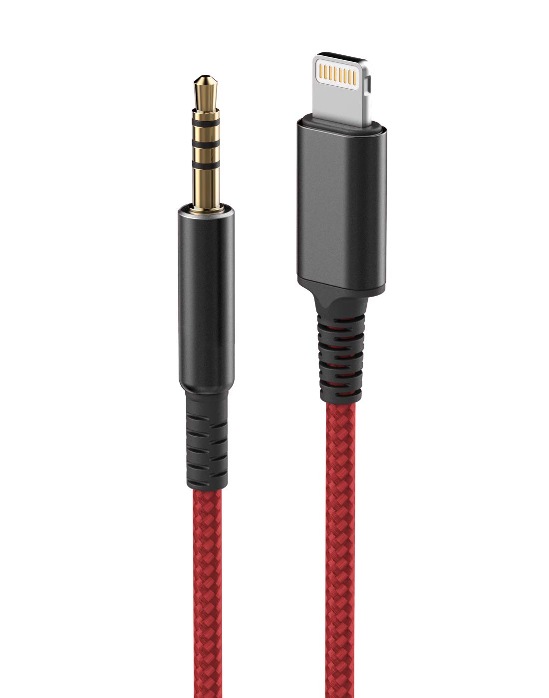 Apple lightening to 3.5 braided premium headphone audio cable with inline remote and mic – 4 ft long