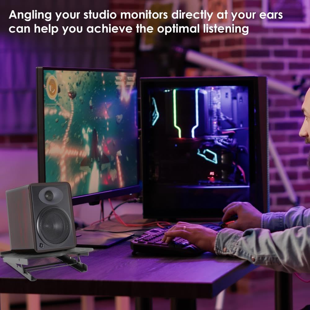 FOUR ANGLE ADJUSTMENTS: With the ability to tilt your monitors at 5, 10, 13, and 15 degrees, you can find the perfect listening angle. This flexibility helps you achieve the best audio balance and reduces listener fatigue over long periods.