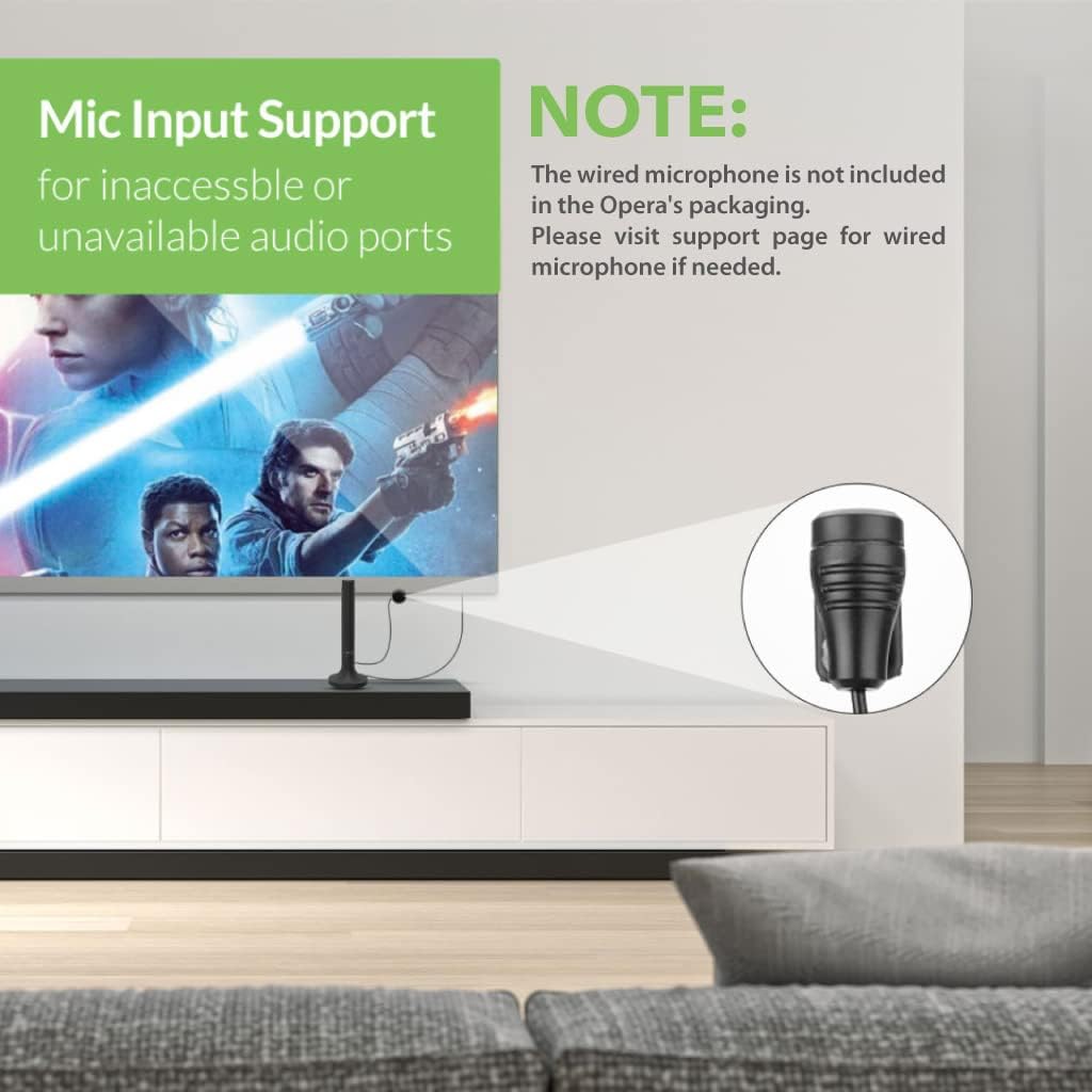 [UNIVERSALLY COMPATIBLE] Thanks to Opera’s Optical, AUX, and RCA input cables, it is universally compatible and works with all TVs on the market. With it, you’ll be able to listen to your favorite TV shows/movies at your own volume; you’ll no longer have to turn the TV speaker volume all the way up and disturb your family or neighbors.