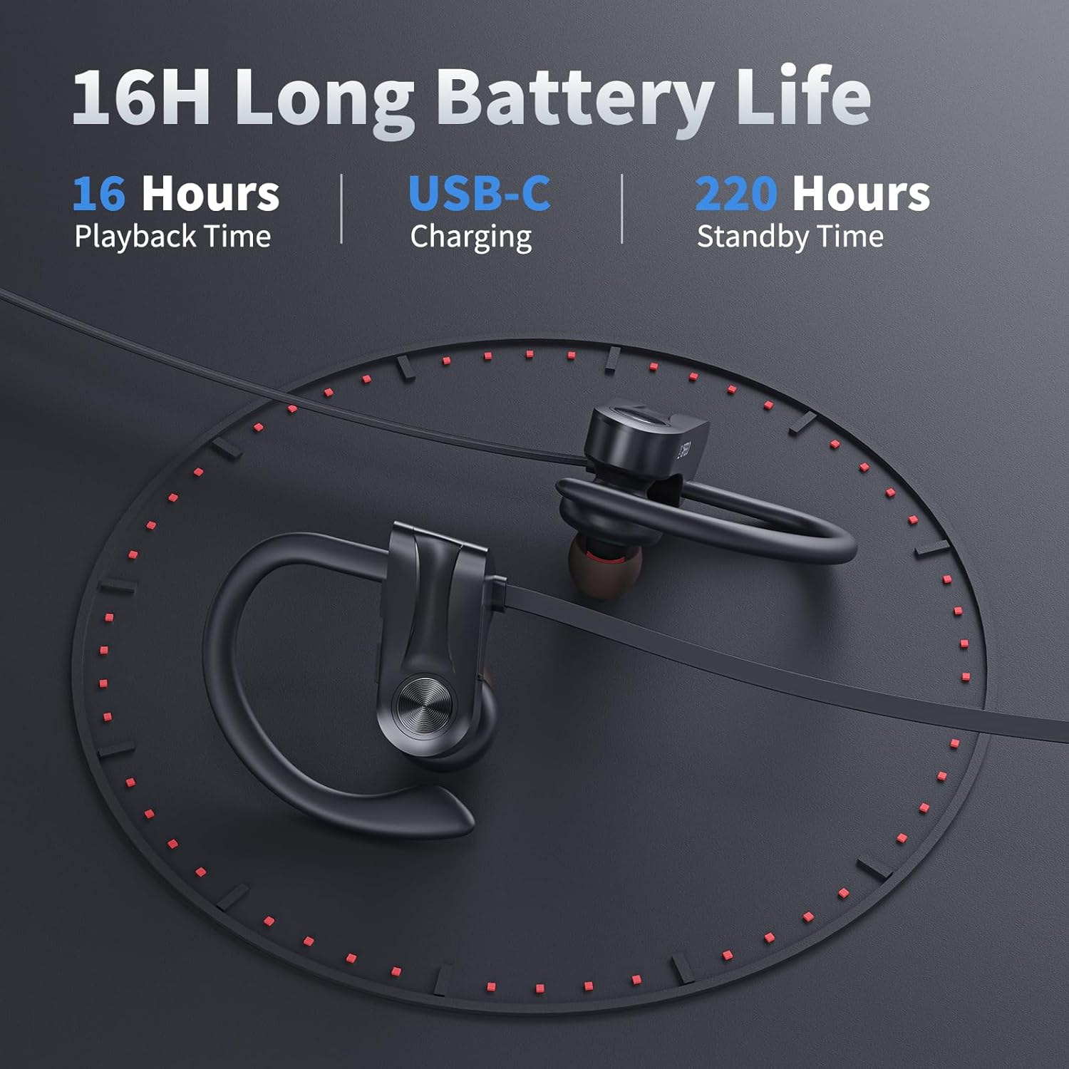 Bluetooth Headphones, Wireless Earbuds Bluetooth 5.3 Headphones with 16Hrs Playtime Stereo Bass Headsets, IPX7 Waterproof Running Earphones for Sports, Black