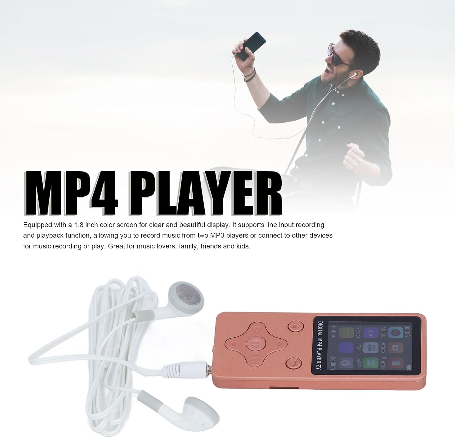 Bluetooth MP3 Player with Earphones, Portable HiFi Lossless Sound Music Player with Speaker, Mp3 Player with Radio, Voice Recorder, EBook, Up to 128GB Expandable (Rose Gold)