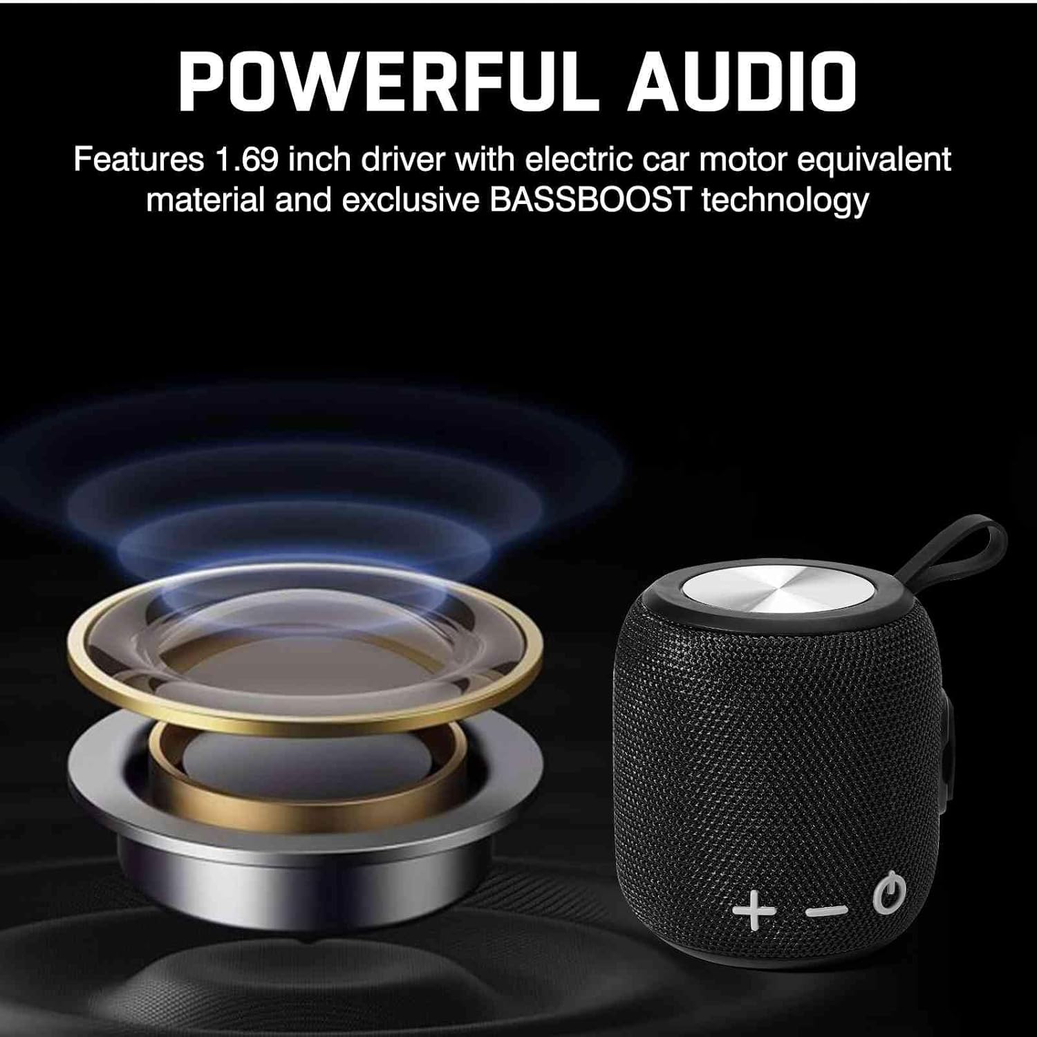 Bluetooth Speaker: Powerful Stereo Sound, IPX7 Waterproof, True Wireless Stereo Pairing, Portable Design, Latest Bluetooth V5.2 – Perfect for Sony Xperia 5, Beach, Outdoor, Home, Parties- Black