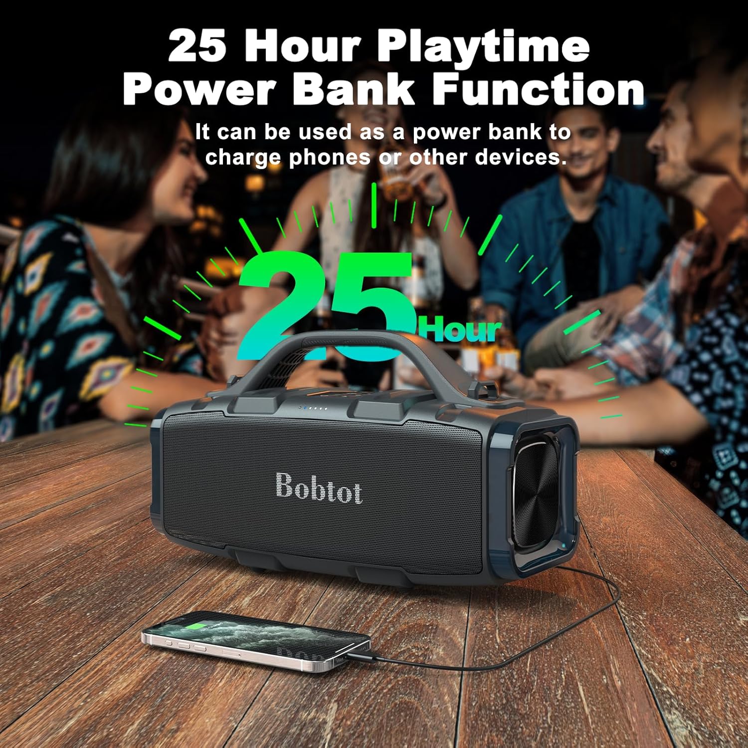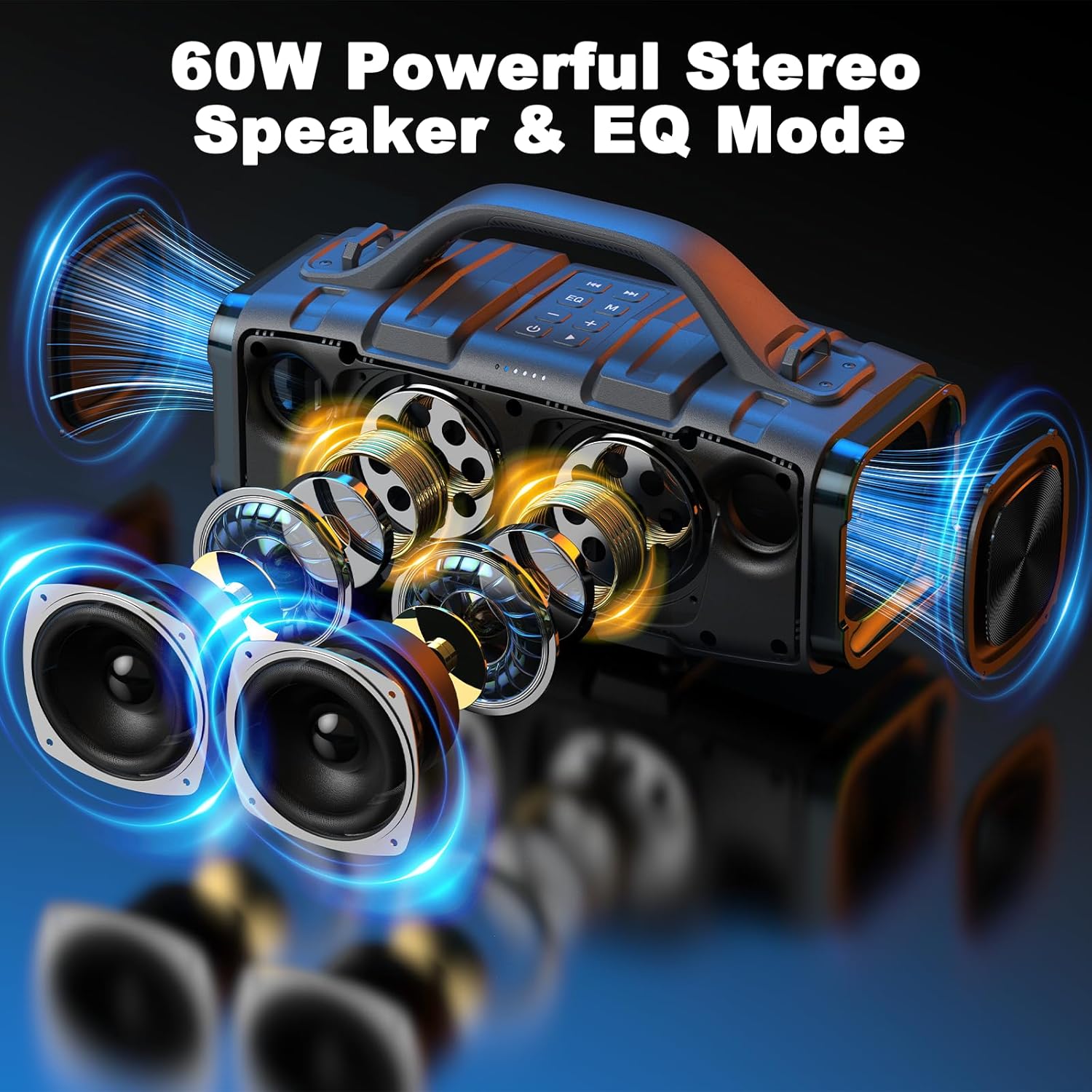 Bobtot Portable Bluetooth Speaker Wireless, 60W Peak IPX6 Waterproof Bluetooth Speaker with Handle, Stereo Loud Sound, Deep Bass, 8800mAh Power Bank, TWS/TF/AUX/EQ, Outdoor for Party, Beach, Camping