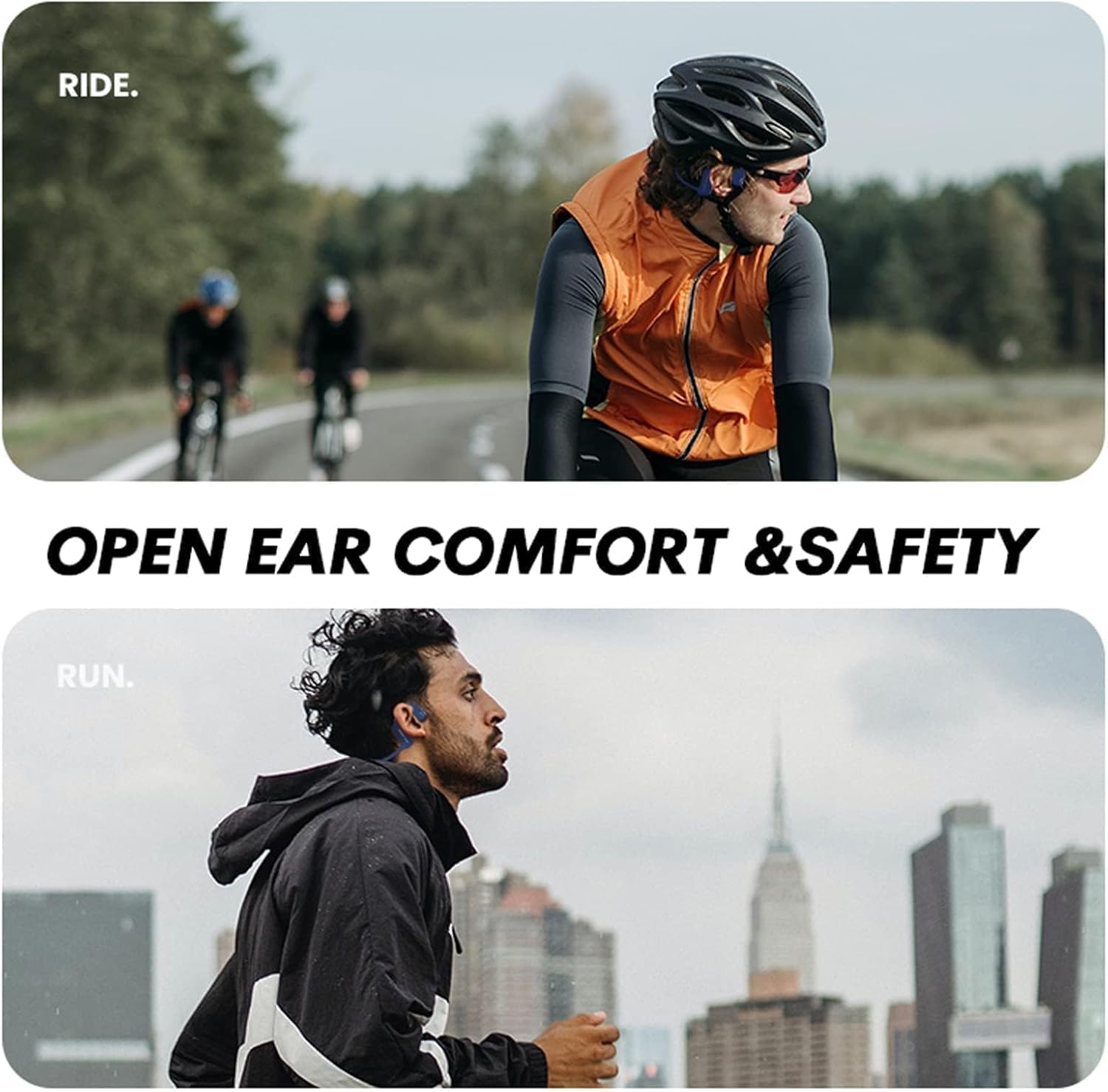 🎧【Real Bone Conduction】Wireless bone conduction headphones with microphone use bone conduction technology to transmit sound through the cheekbone. It is not only safer than in-ear earbuds and over-ear headphones, but also prevents hearing damage.