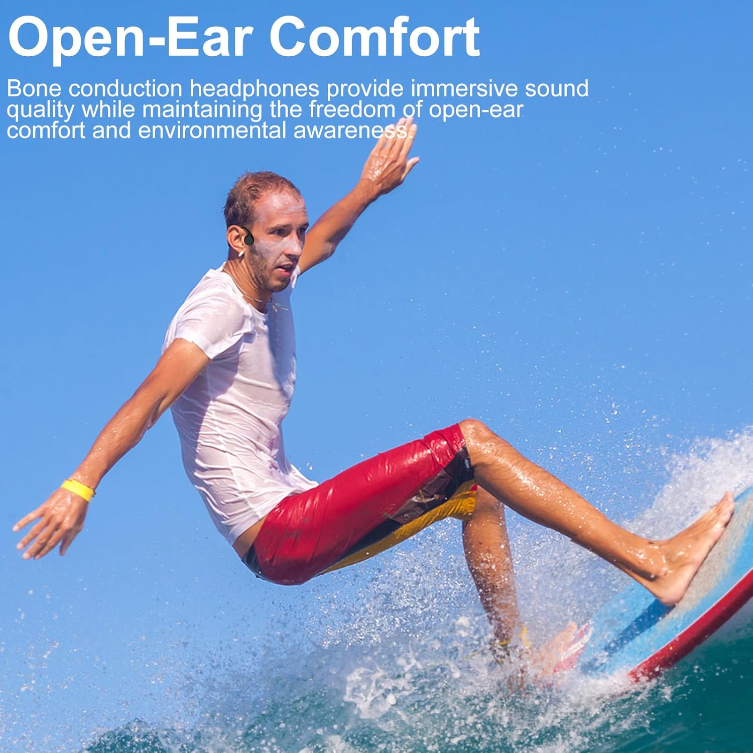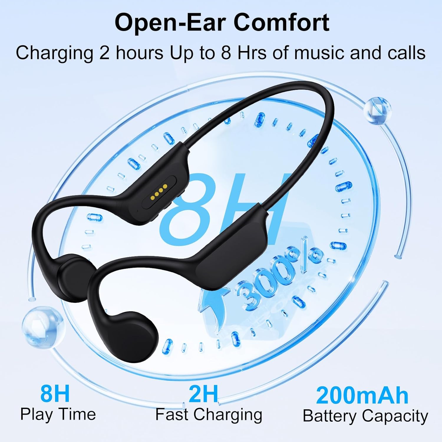 【Open-ear Comfort】Open headphones with bone conduction technology ensures comfortable all-day listening without earbuds, keeping your inner ear canal clean and allowing you to enjoy your music while being aware of the sounds around you. Perfect for indoor and outdoor sports such as running, cycling, walking, exercising, travelling.