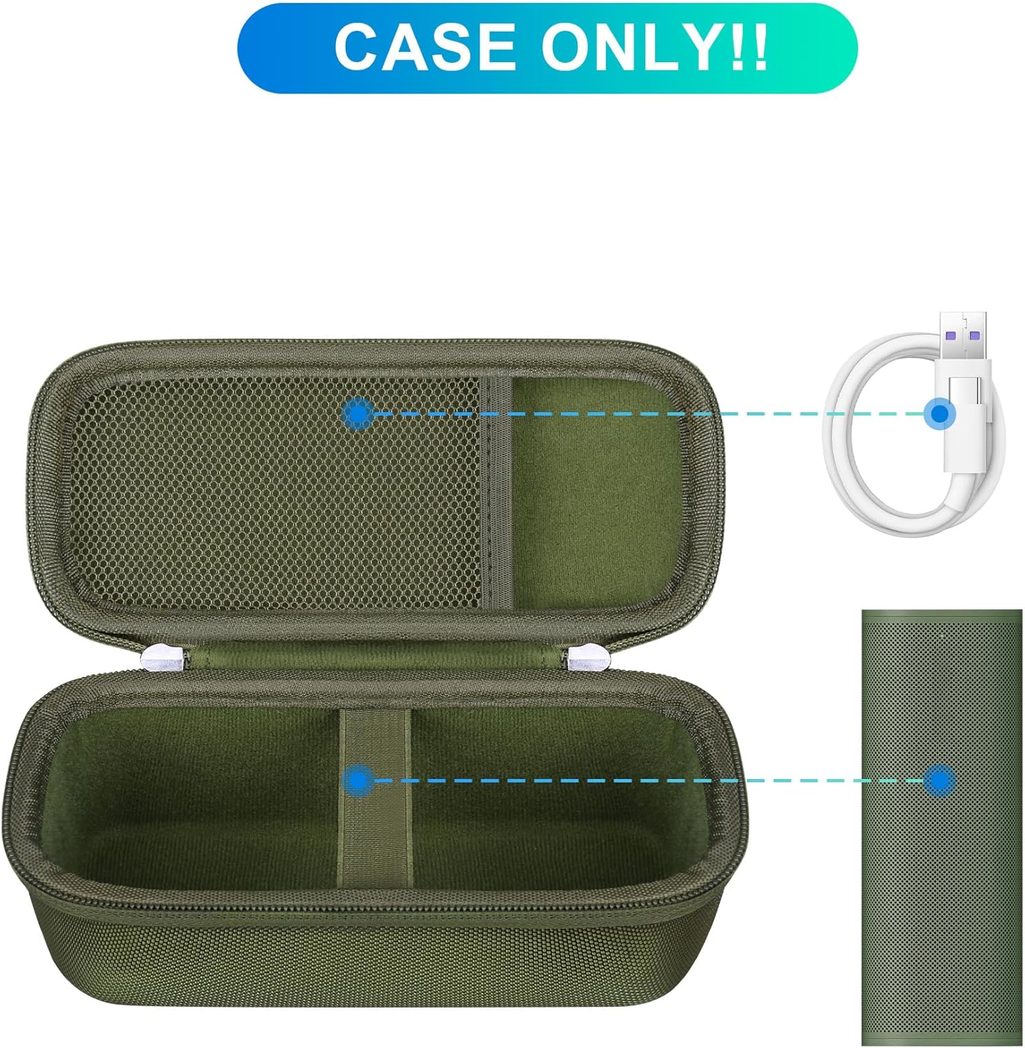 This Sonos Roam 2 speaker case comes with a mesh pocket to store the extra charging cable and accessories., keep everything organized in one place.