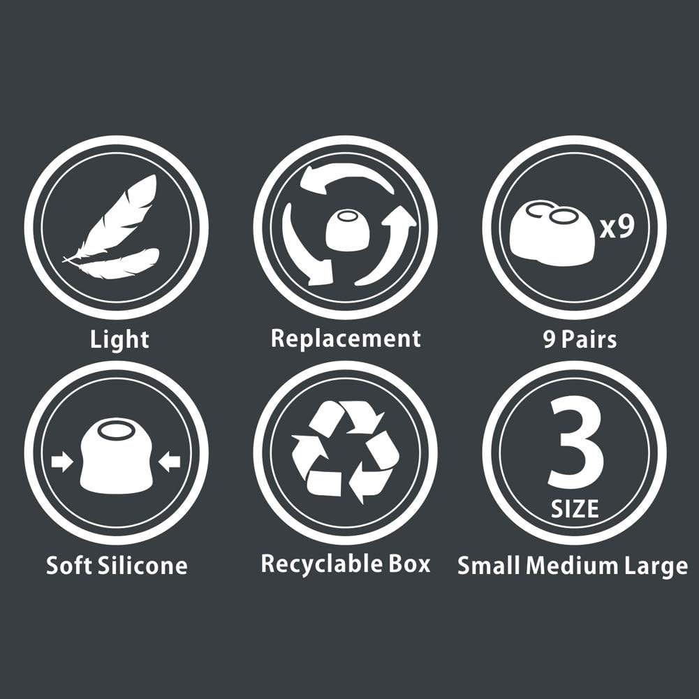 Silicone Earbud Tips Replacement Earbuds cap Eartips Tips Eargels 9 Pairs S M L