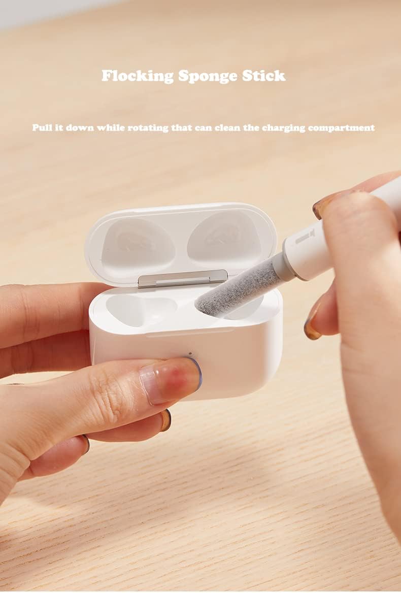 【Cleaning Pen】Cleaning pen have double pen shape design, one pen of the metal tip can clean the small parts, one pen of the flocking sponge can clean the dust and dirt hidden in those deep holes that you can’t reach out by fingers. You don’t have to push the smooth up&down button to use it like you do with the traditional two-ended cleaning pen, which, you know, that speeds up the damage.