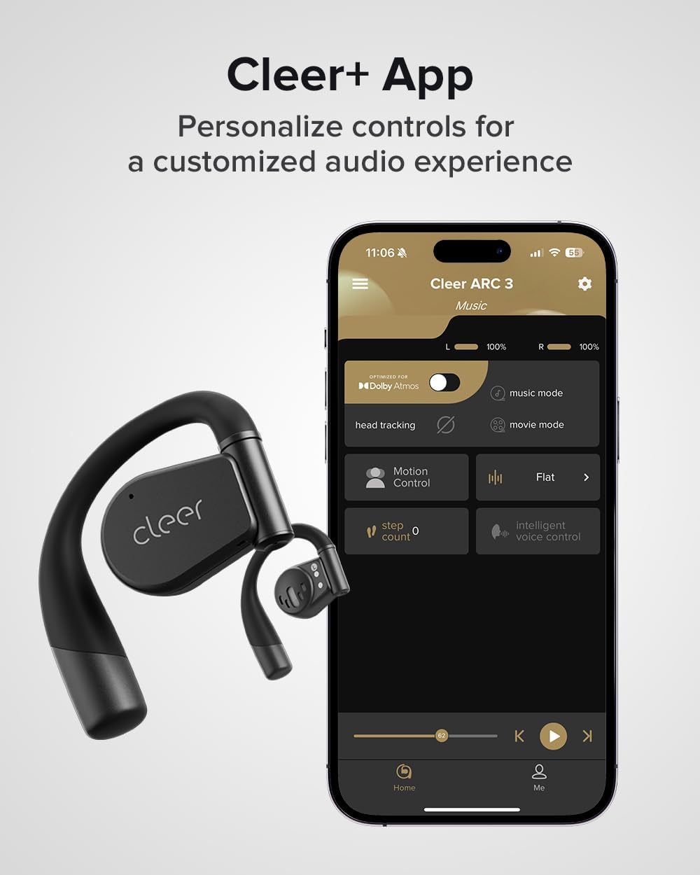Cleer ARC 3 Open Ear Headphones – Dolby Audio, Snapdragon Sound True Wireless Earbuds, 50Hr Battery, Bluetooth 5.4, IPX 7, Multi-Point, Smart Controls, Wireless Charging Smart Case, Comfort Fit, Black