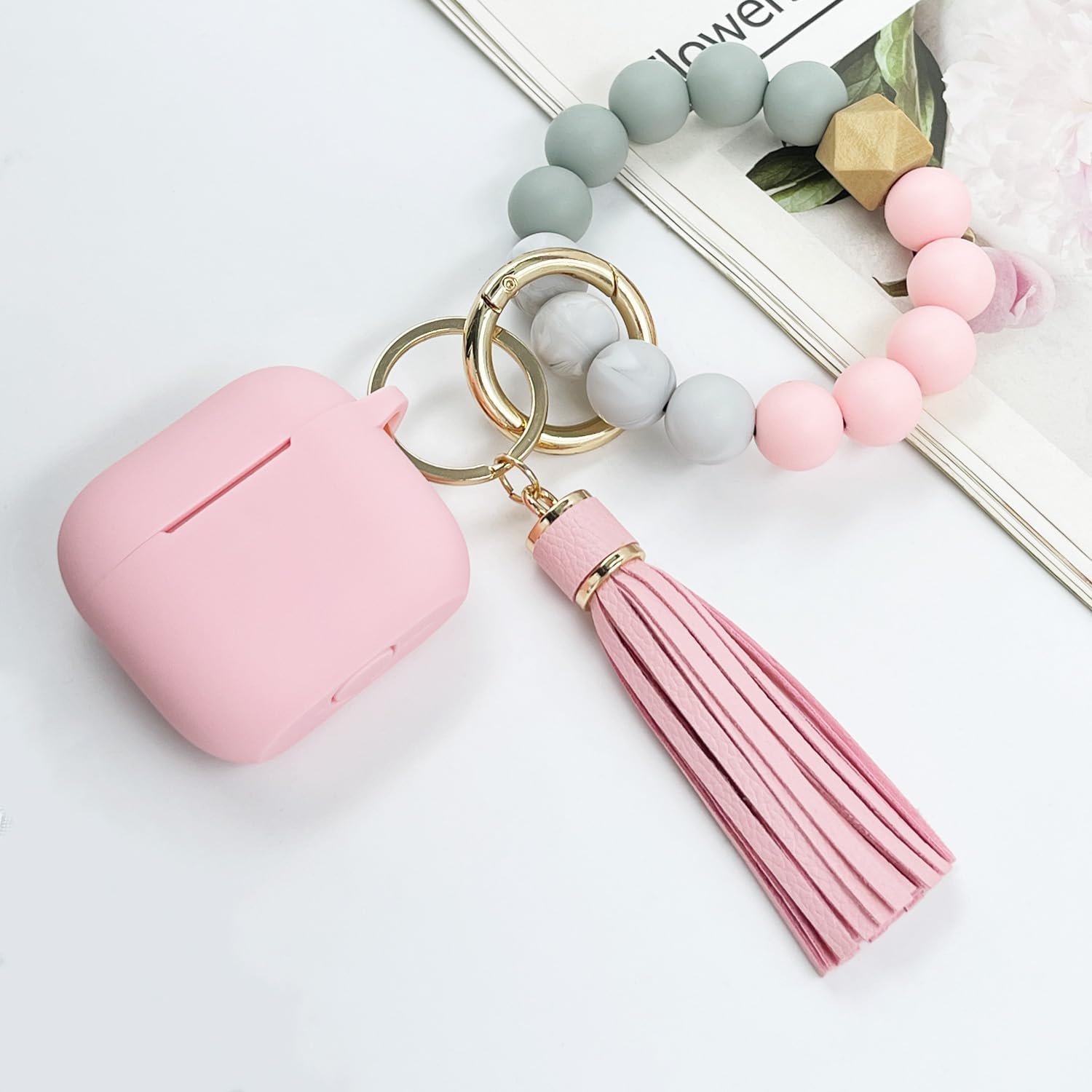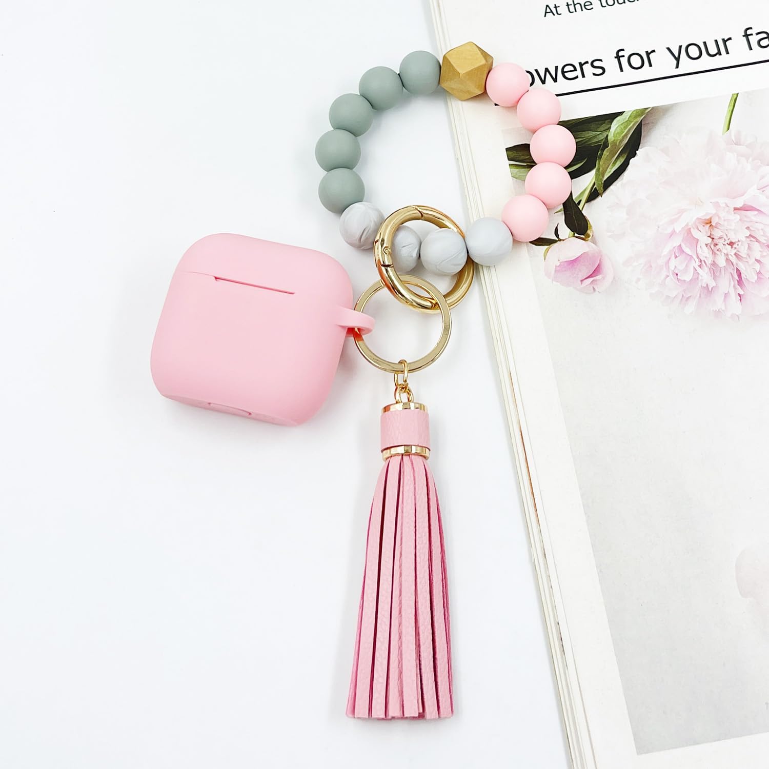 Bracelet Wristlet Keychain: Come with cute beaded key holder bracelet are made of BPA-free and food grade silicone, a wooden bead, gold-plated keyring and PU leather tassel. Specifically designed for girls and women, perfect for decorating your case for airpod 4 and easy to carry