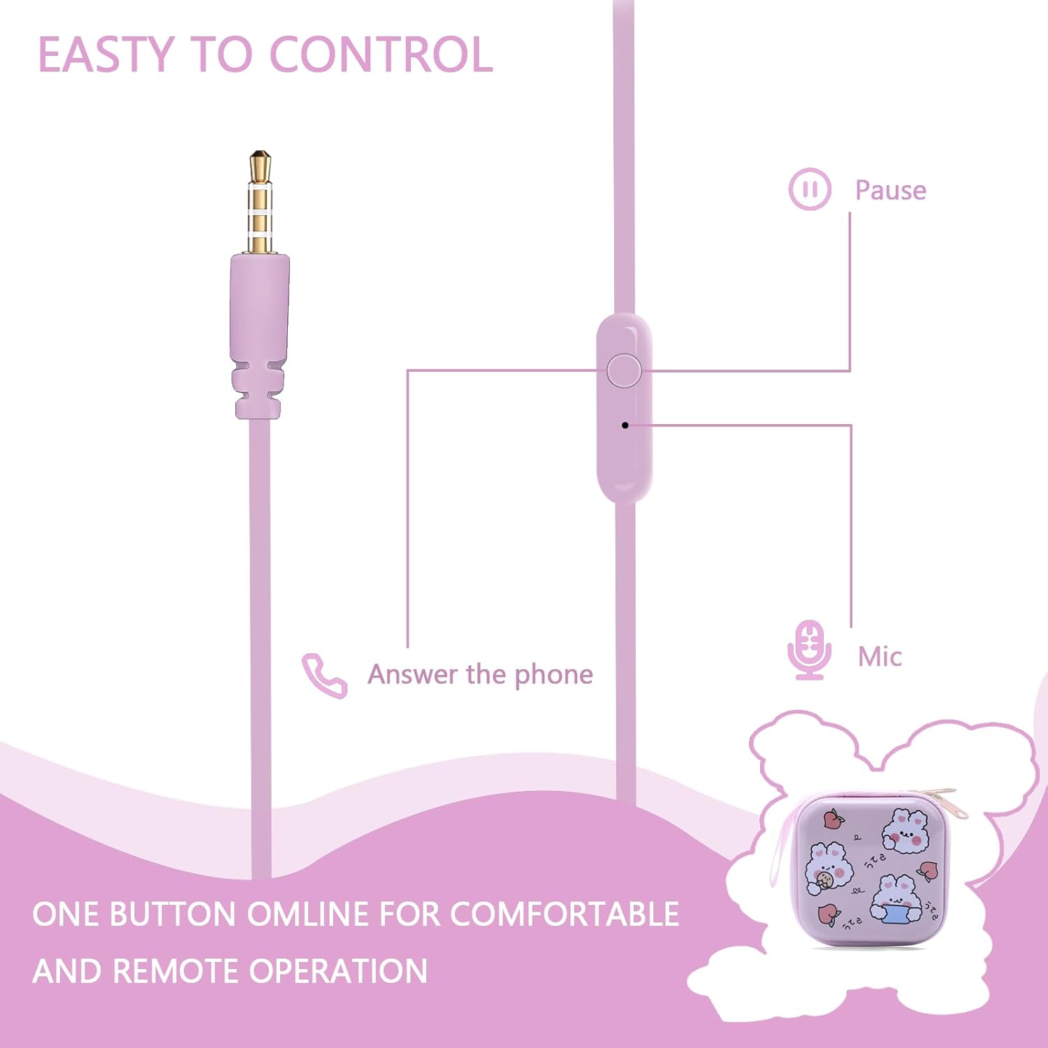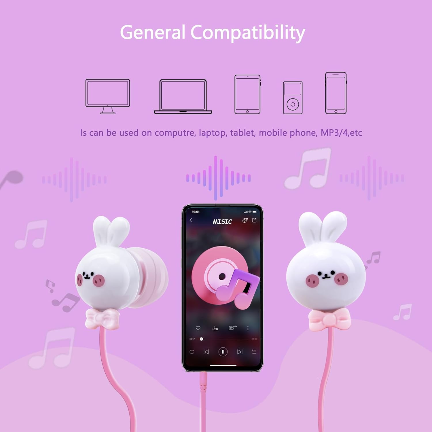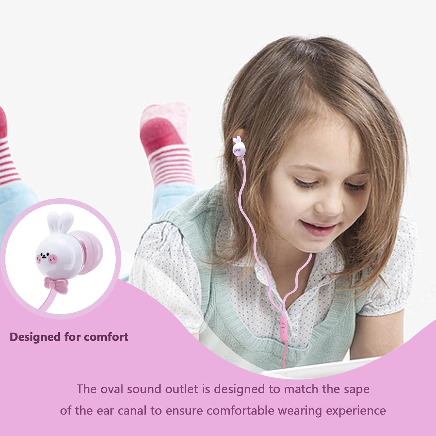 Rabbit Earbuds Function: With microphone, wired control, clear and pleasant bass which suitable for kids E-learning, listening to music, watching movies, playing games or making a video call with their friends