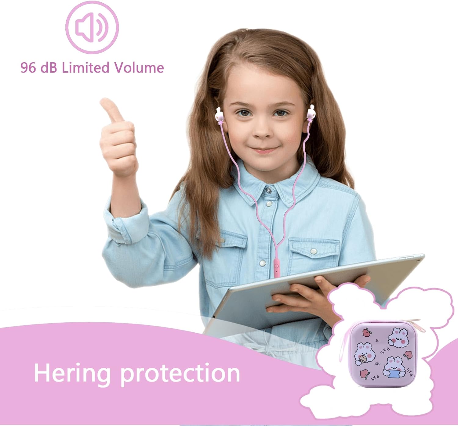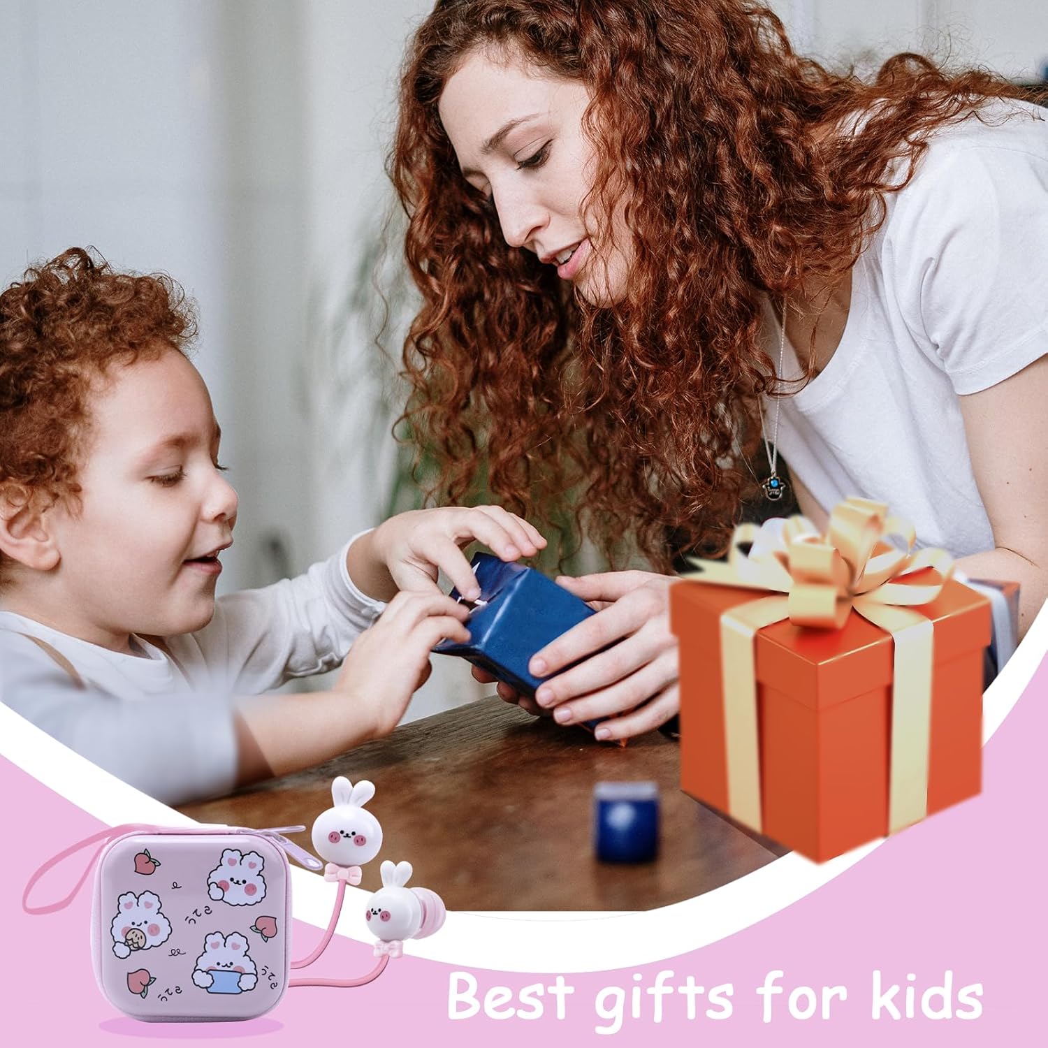 Cute Rabbit Kids Earbuds for School, Earbuds for Kid Size Wired Earphones & in-Ear Headphones with Microphone and Lovely Earbuds Storage Case Gifts for Girls and Boys (Pink)