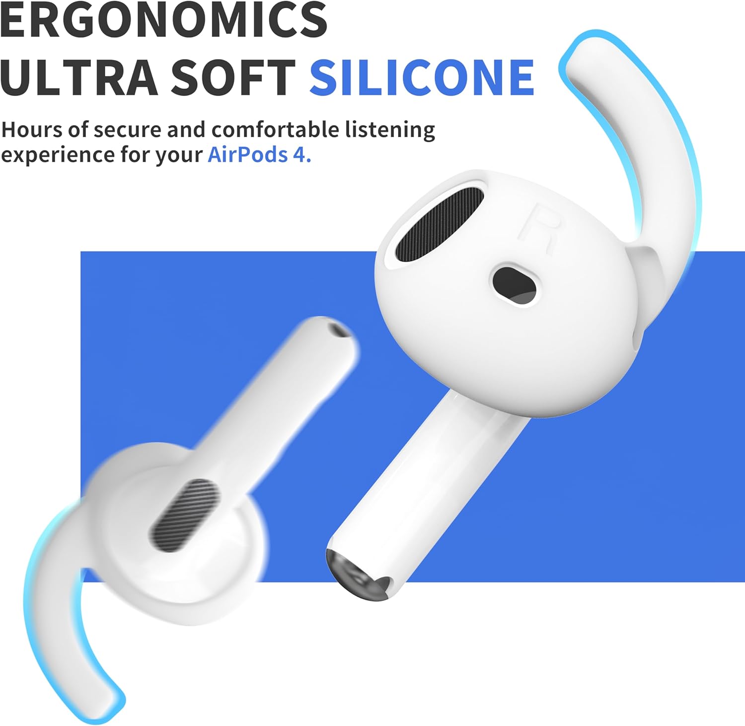 MATERIAL: Made from premium soft silicone, provide a lasting comfort when you are with Apple Airpods 4Generation. Water-washable and durable, dust, sweat, and water resistant.