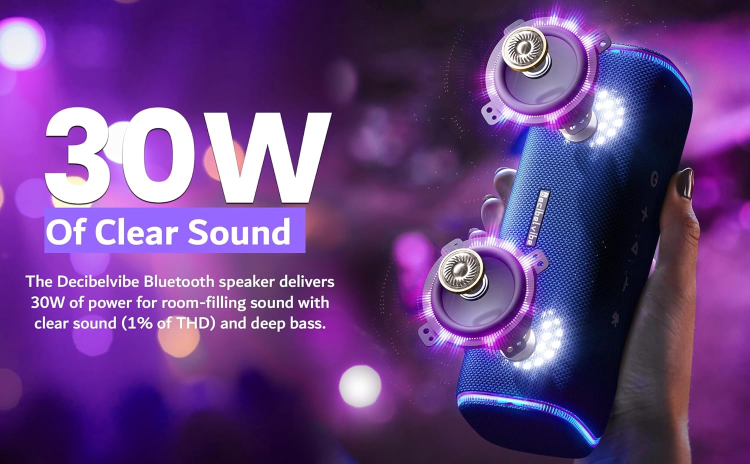 30W Powerful Sound: Equipped with 30W output power, this Decibelvibe portable bluetooth speaker offers clear and good sound that can fill an entire room while retaining its deep bass sound quality.