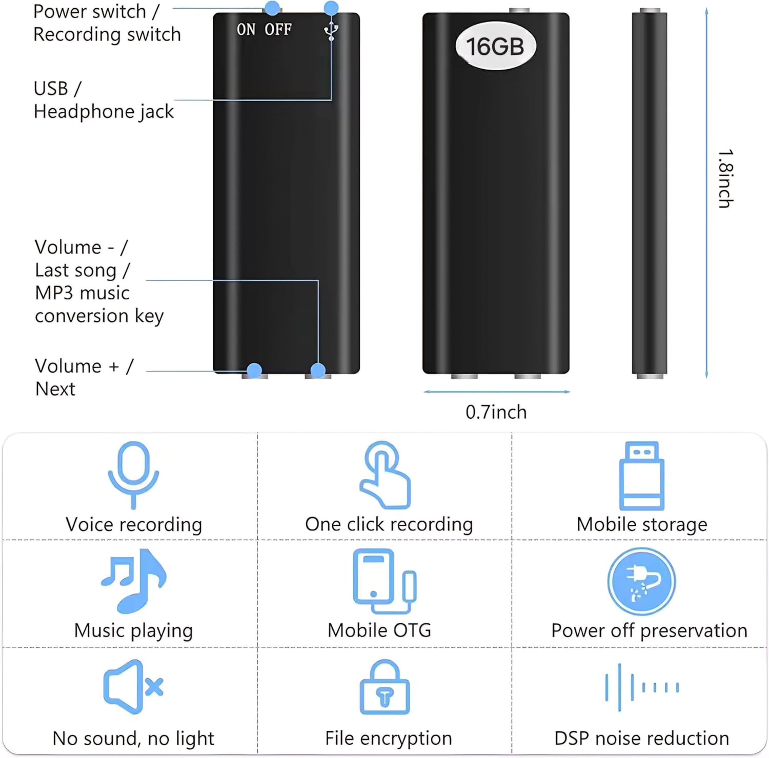✅What’s In The Box: Buy it now to get: 1x 16GB digital voice recorder + USB cable + 1x earphone + user manual.
