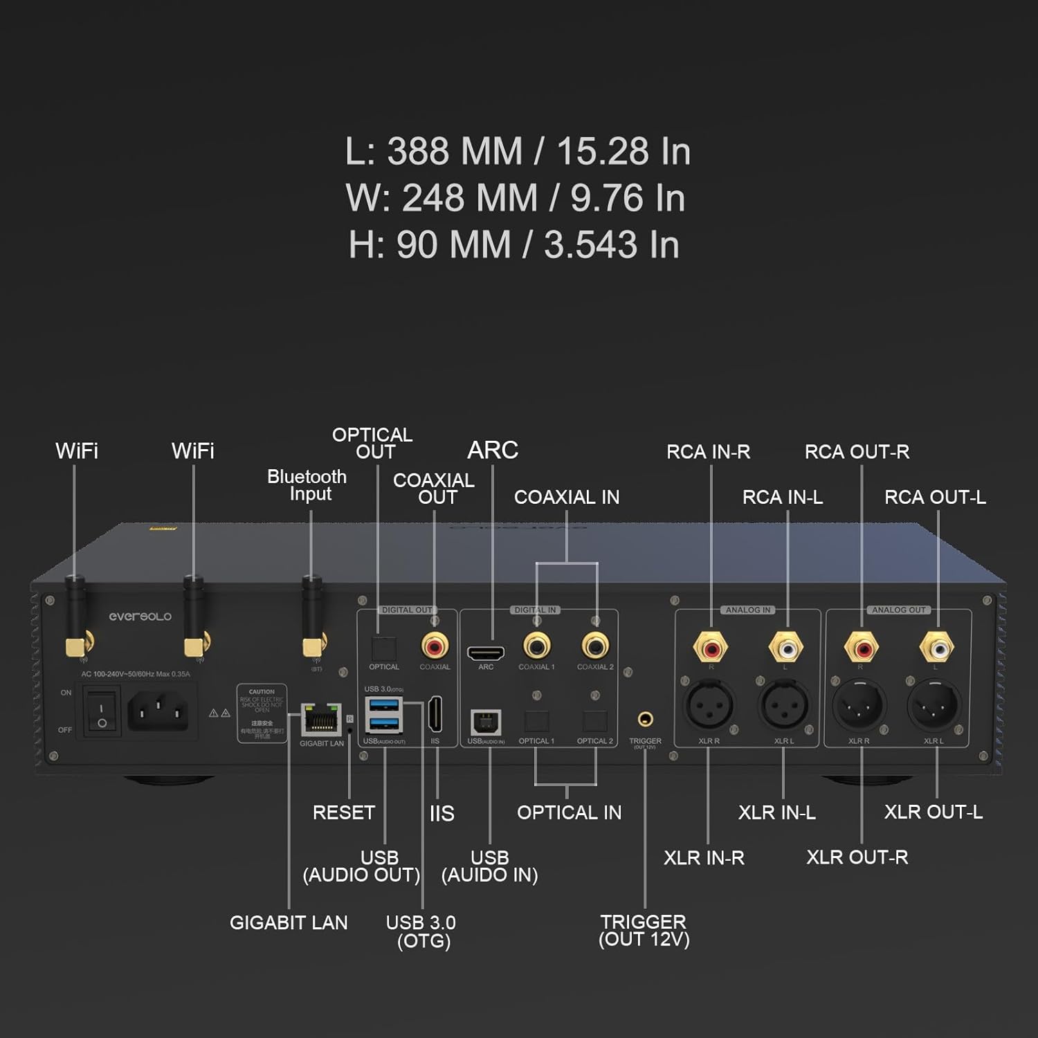 DAC: It supports a wide range of digital inputs: 2 coaxial, 2 optical, ARC input, USB B input. Digital sign go through DMP-A8, it will have RCA/XLR Analog output, or IIS digital output, no Coaxial and Optical output.