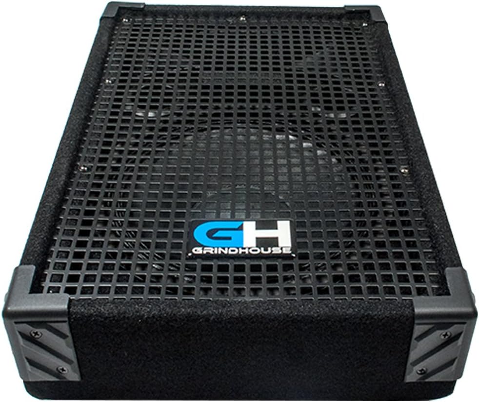 The GH10M is a 2 way passive wedge shaped monitor loudspeaker built from a 10 Inch High Output Mid/Low Ribbed Cone Woofer and a 1 Inch High Temp Multi Layer Copper Voice Coil mounted on a Wide Dispersion High Frequency 1 Inch Horn Tweeter for the highest quality sound. These components are housed in computer engineered MDF Acoustic Enclosure to get the most out of your speaker. The low end is enhanced by a Tuned Bass Reflex Enclosure to maximize the boom. A steel mesh screen is installed to prevent damage to the speaker and horn. The GH10M is rated at 300 Watts RMS and 600 Watts Peak to get maximum volume from this cabinet. It is wired at 8 ohms to make it easy to daisy chain additional speakers. The Grindhouse brand of Pro Audio gear is an affordable alternative to high priced audio gear. Do not be fooled by the price! Low prices do not always translate to a cheap product. Grindhouse Speakers are high quality product and produce a superb sound. Give them a shot and you will be happy you did.<>