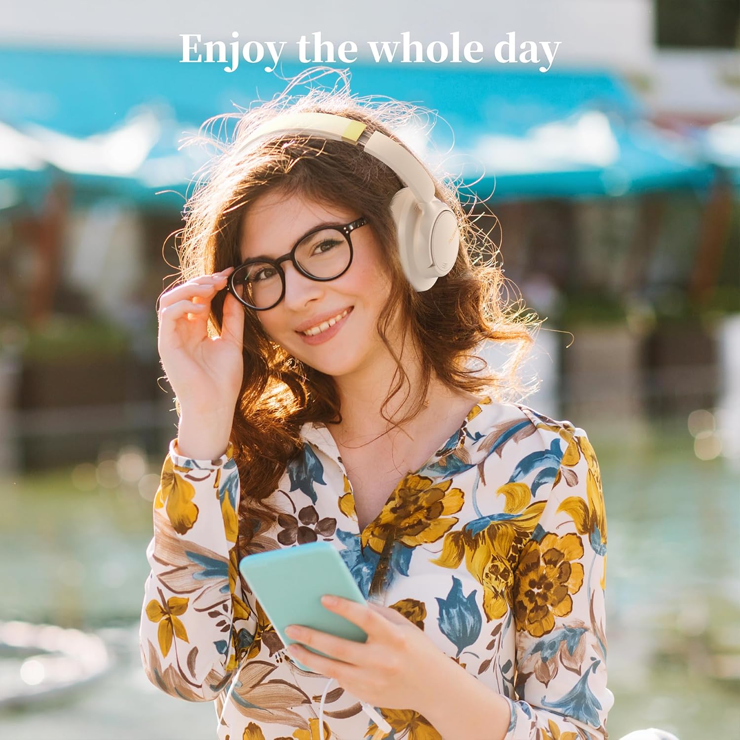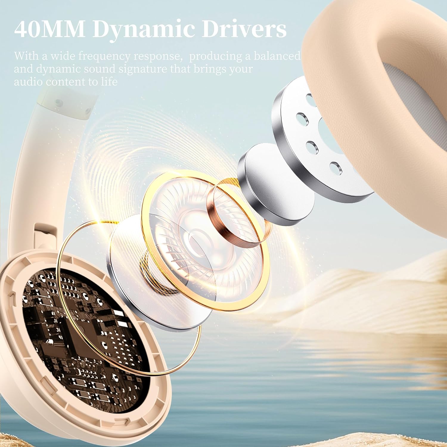 [Both Wired & Wireless Connection] Over the ear headphones wireless bluetooth are equipped with 40mm drivers that bring you superior Hi-Fi sound and balanced deep bass for a better listening experience. In addition, headphones wireless bluetooth support both wireless and wired connections. When using a wired connection, the 40mm dynamic drivers produce high-fidelity sound for exceptional sound quality(Note: ANC function and mic is not available when in wired mode)