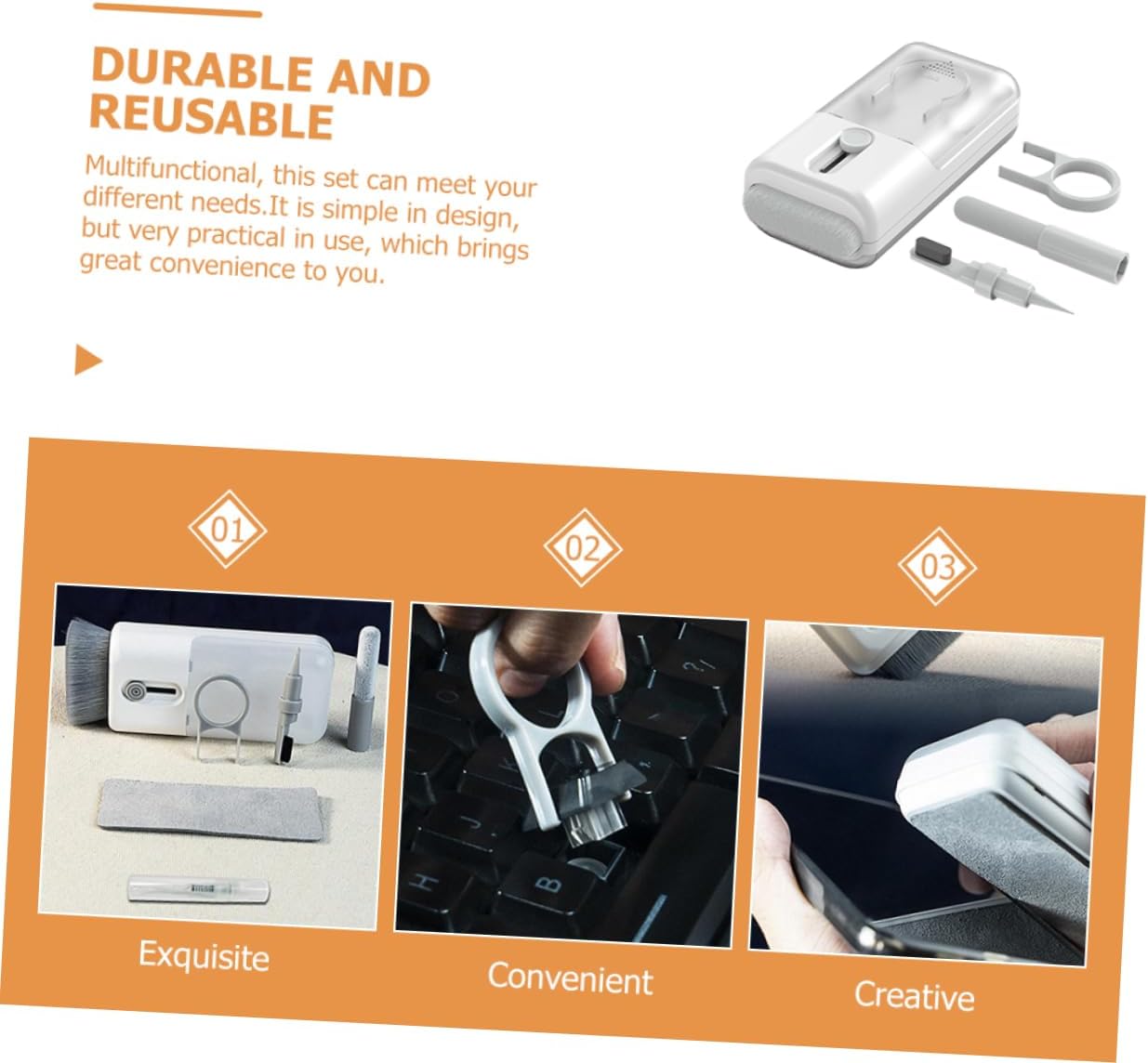 – It is simple in design, but very practical in use, which brings great convenience to you electronics cleaning tool kit.