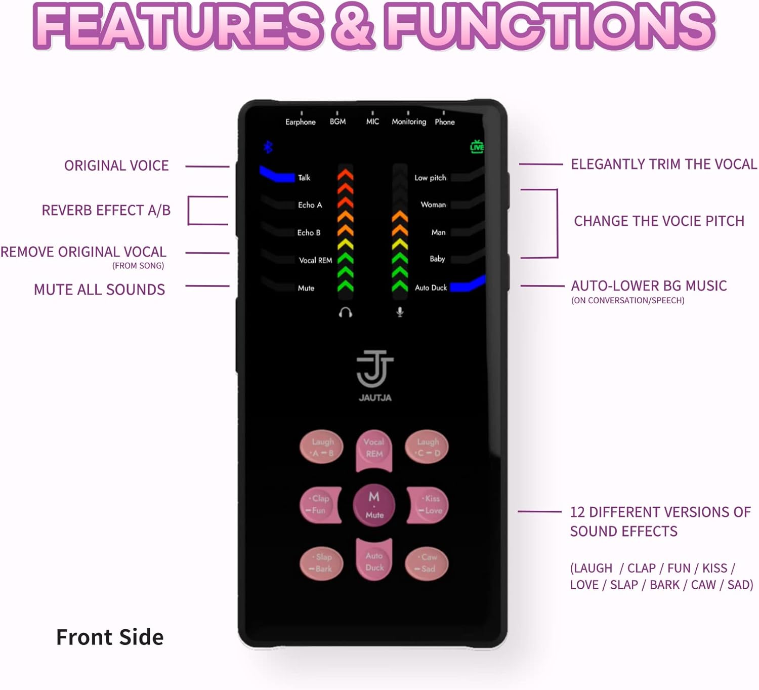 Elevate Your Audio with 12 Sound Effects on the JAUTJA Device