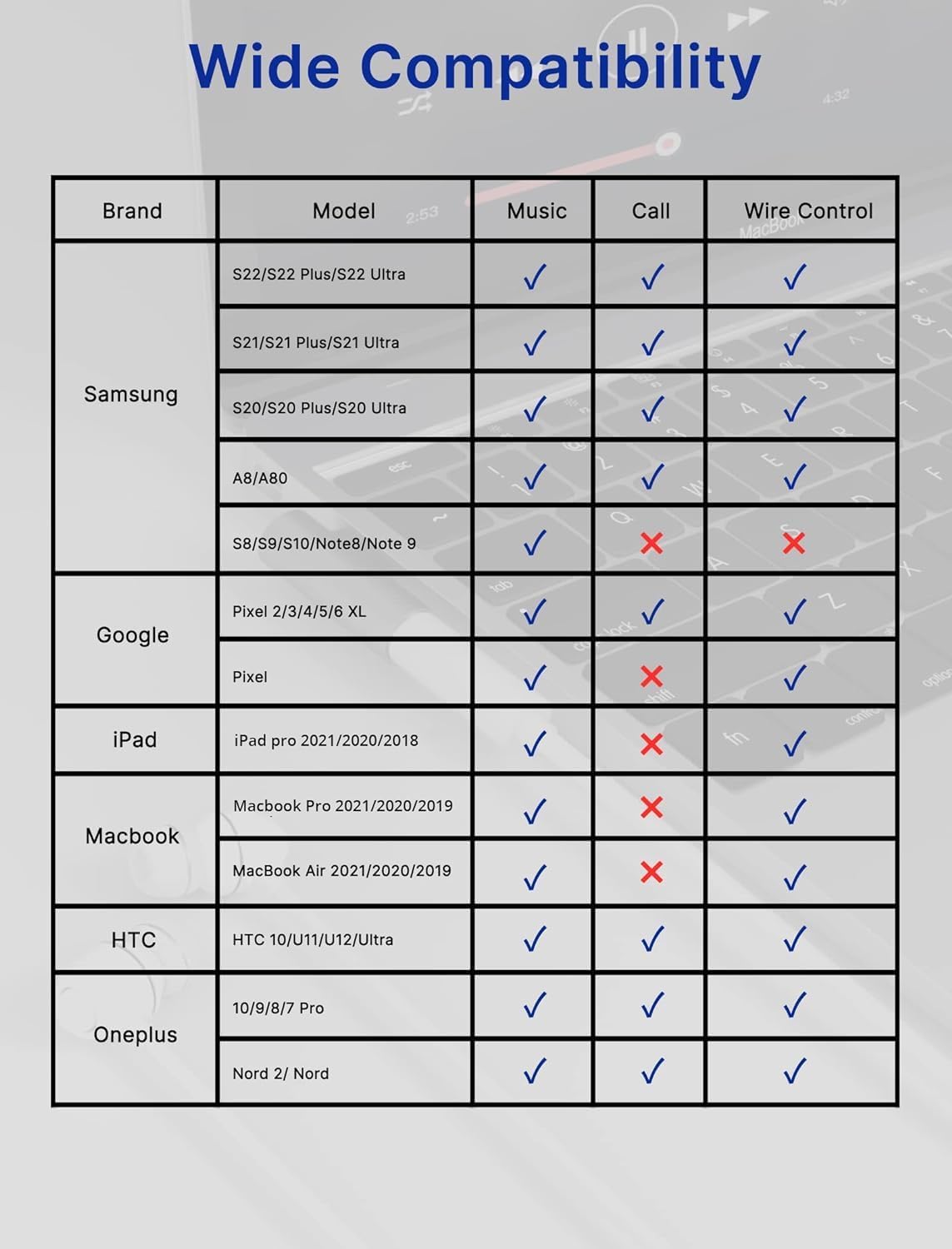For iPhone 16/15 iPhone 16 Pro Max / 16 Pro / 16 Plus / 16 / iPhone 15 Pro Max / 15 Pro / 15 Plus / 15 For Samsung Galaxy Galaxy S23 Ultra / S23 / S23+ / S22 / S22 Plus / S22 Ultra / S21 / S21 Plus / S21 Ultra / S20 Ultra / S20 Plus / S20 / Note 10 / S8 / S8 Plus / S10 / S10+ / S9 / S9 Plus / Tab S8 For iPad iPad 10, iPad min 6, iPad Pro 2022 / 2021 / 2020 / 2018, iPad Air 4, iPad Air 5 For Macbook MacBook Pro 2023 / 2022 / 2021 / 2020 / 2019, MacBook Air 2022 / 2021 / 2020 / 2019, iMac 2021 M1 For OnePlus 10 / 10 Pro / 9 / 9 Pro / 8 Pro / 8 / 7T Pro / 7T / 7 Pro / Nord 2 / Nord For 3.5mm Devices Headphones / Earphones / headsets / Car Radio System / Speaker / Amplifier / Hi-Fi system