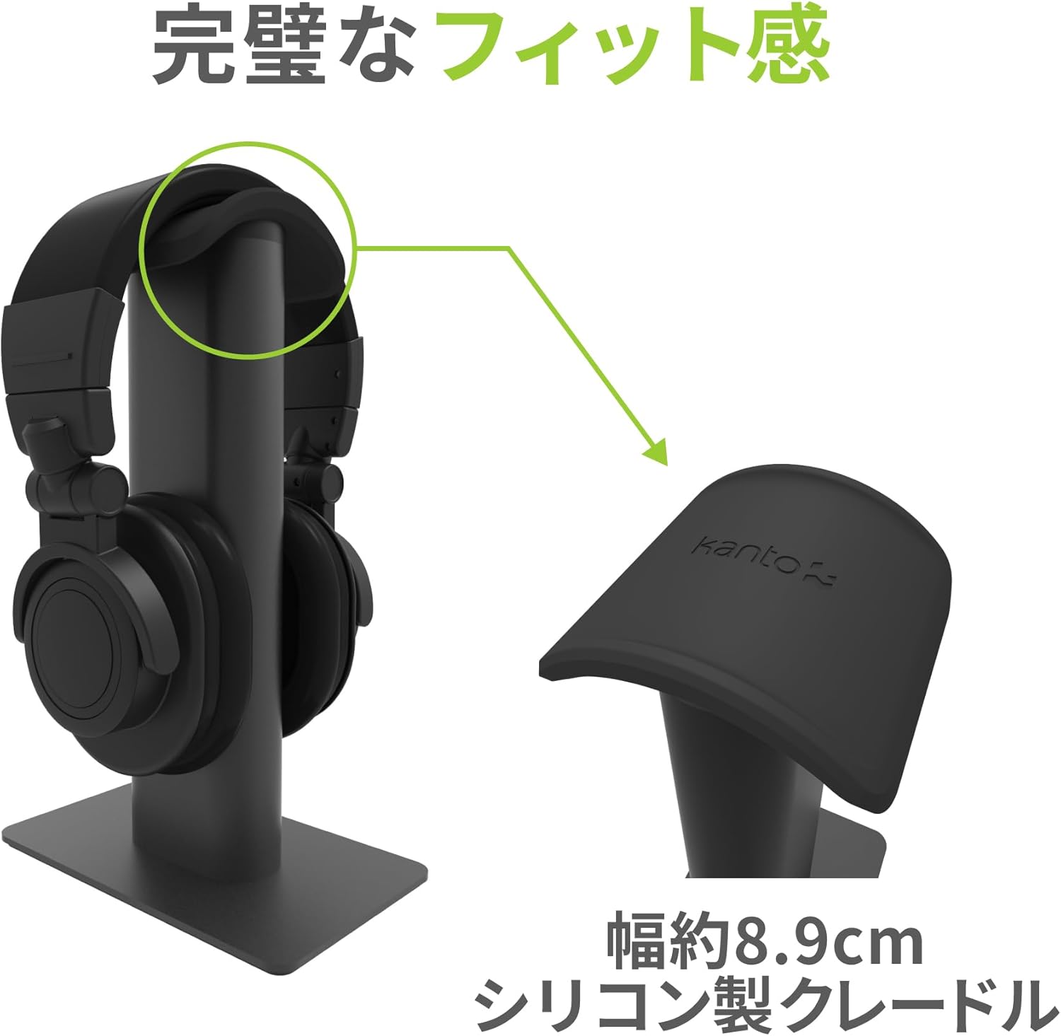 A PERFECT FIT – H2 measures 11.5″ tall to provide sufficient distance between your headphones and the surface of your desk. Its silicone cradle is large enough to fit headbands up to 3.5″ wide, and is contoured to prevent impressions being left on softer materials.