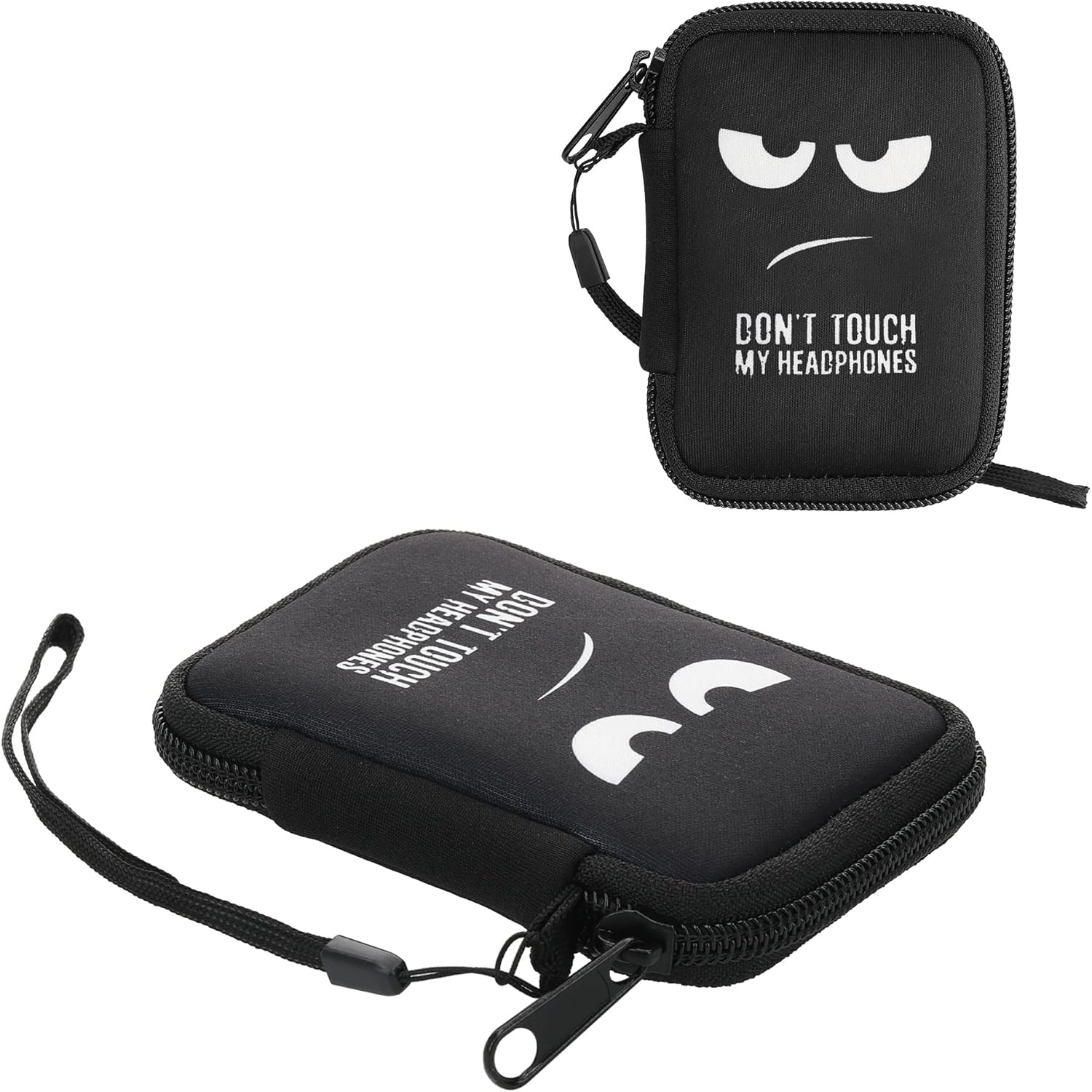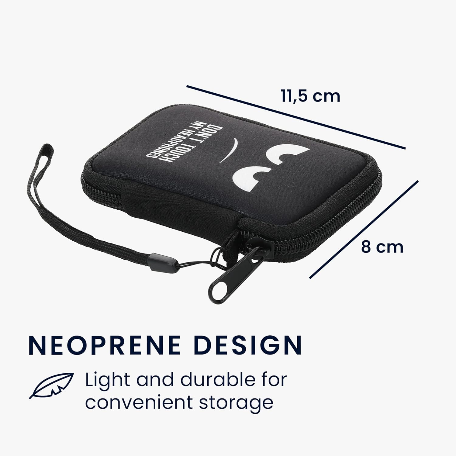 kwmobile Neoprene Case Compatible with in-Ear Headphones – 2.3 x 3.5 inches (6 x 9 cm) Case with Zip – Don’t Touch My Headphones