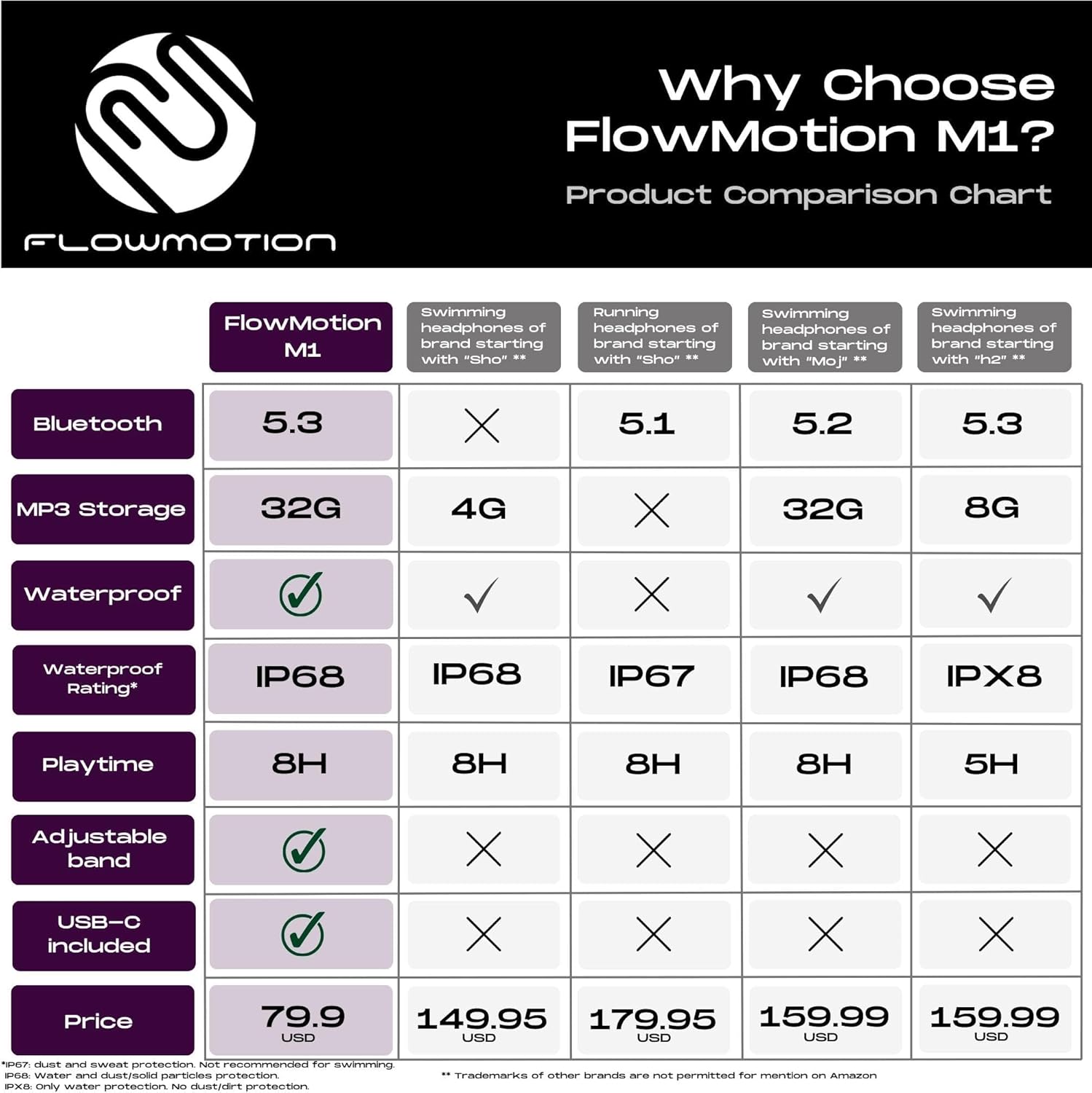 Escape the inconvenience of multiple headphones with the FlowMotion M1. This advanced headset caters to all your needs – Bluetooth 5.3 wireless connection for seamless streaming during running and workouts while built-in mp3 storage allows uninterrupted music during swimming sessions.