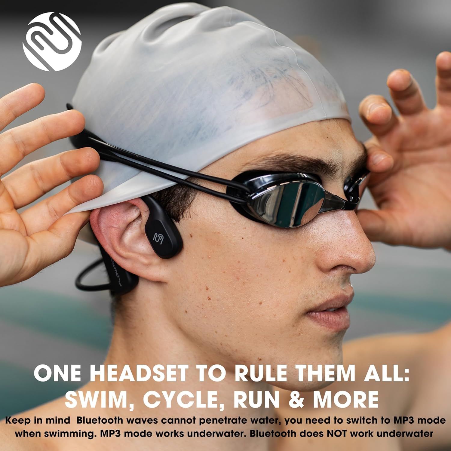 M1 Swimming Headphones Underwater Open ear Bone conduction earbuds waterproof earbuds for swimming laps Wireless Bluetooth Headband 32G Running Headphones for Swimming, Cycling, Gym, Workout