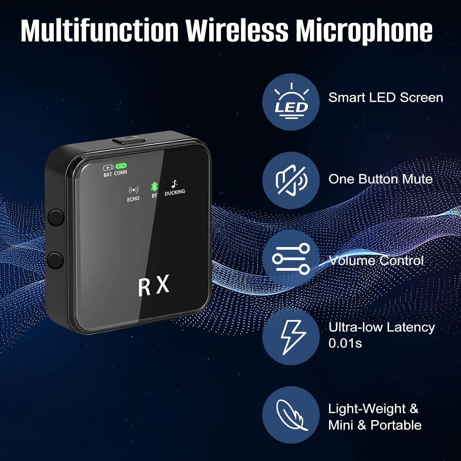 Smart LED Indicator Display: The wireless microphones systems contain a built-in 3-inch screen on both transmitter and receiver. The screens of the wireless mini mic clearly shows the statue of battery level, connection, ENC, Echo, Audio Ducking, Bluetooth Vocal Accompaniment and Mute function, making this type of wireless lavalier microphones easy to read and use