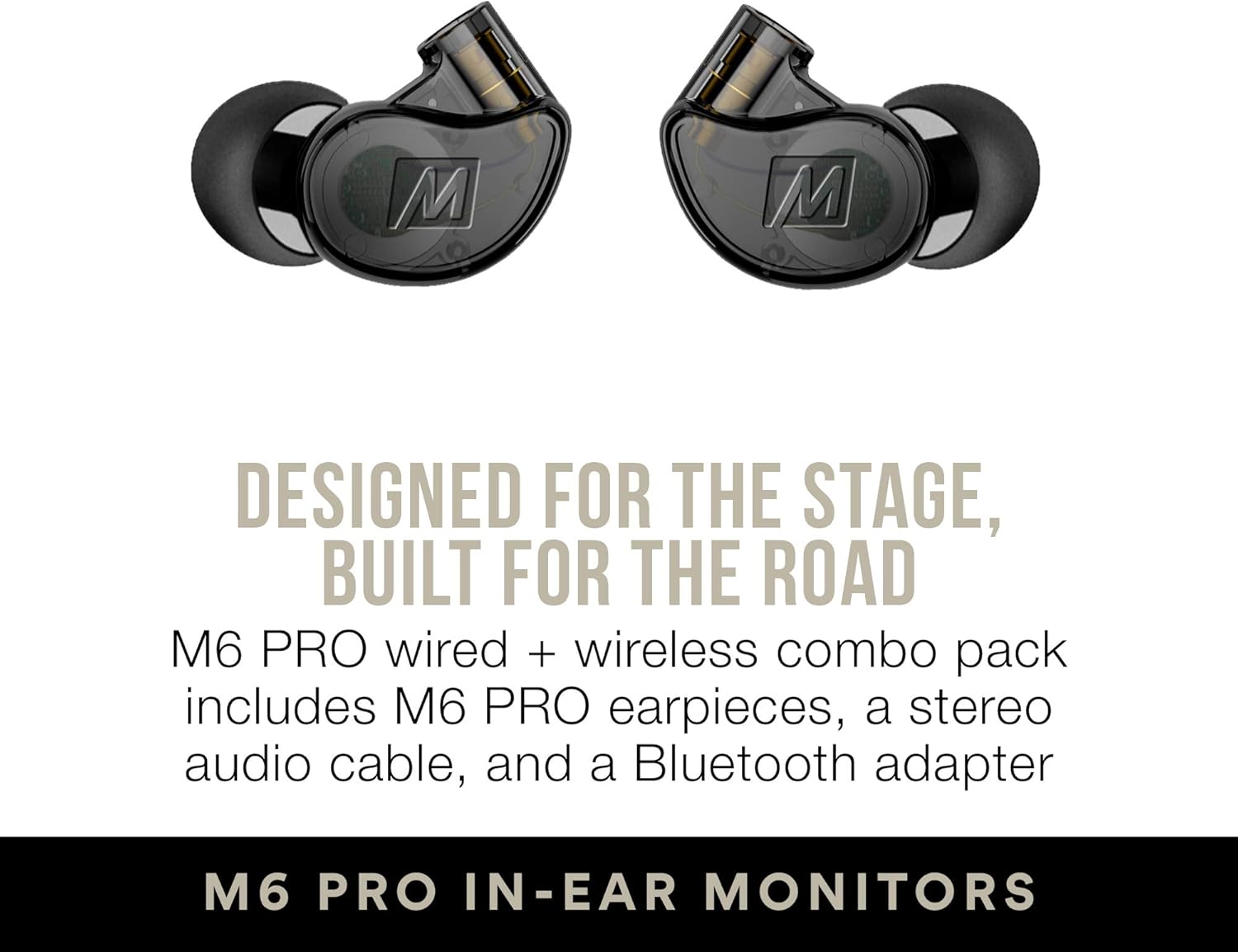 MEE audio M6 PRO Musicians’ In-Ear Monitors Wired + Wireless Combo Pack: includes stereo audio cable and Bluetooth audio adapter (Black) (CMB-M6PROBT-BK)