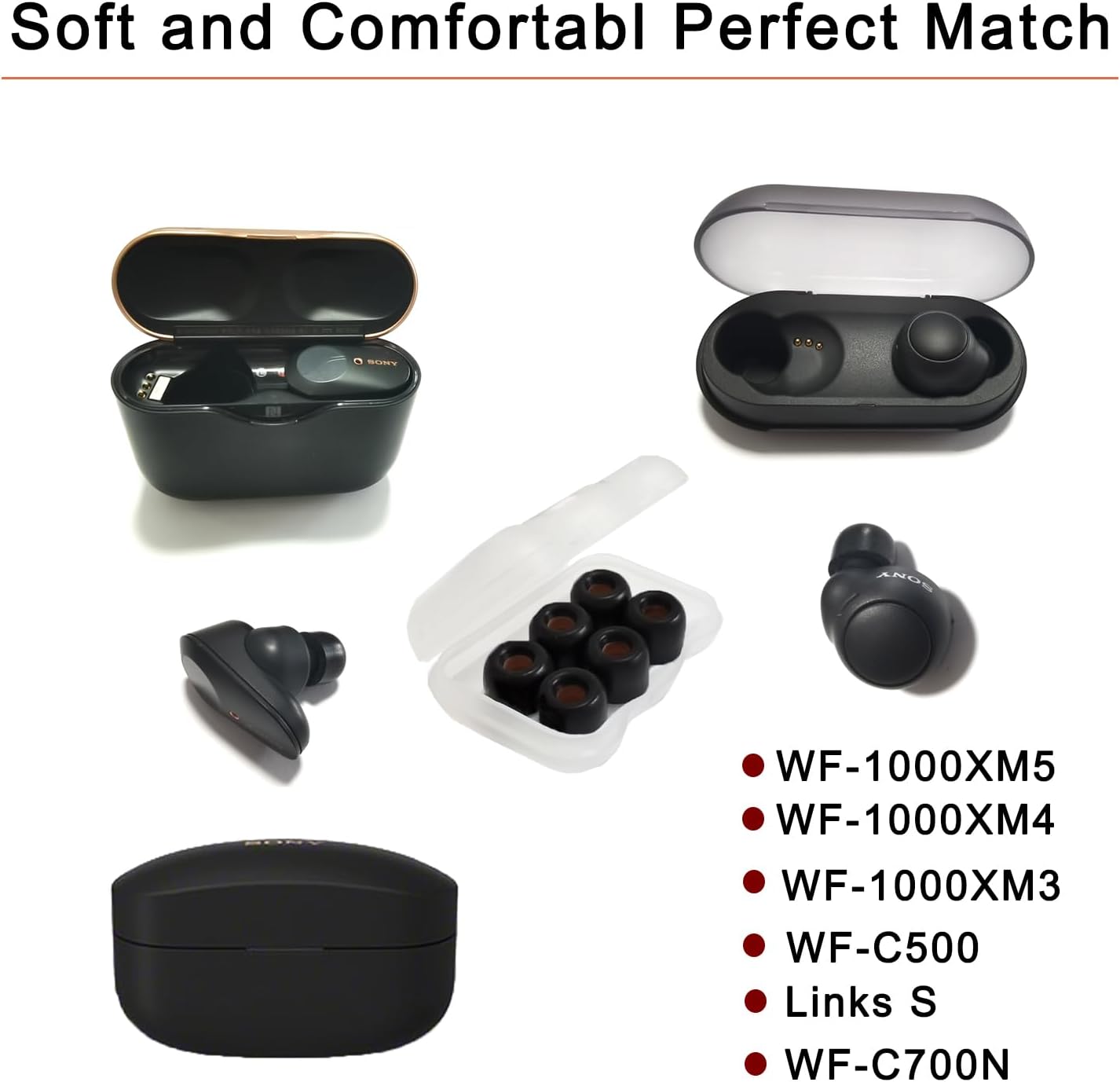 Memory Foam Ear Tips for Sony WF-1000XM4/WF-1000XM5 Earbuds Tips Sony WF-C500 LinkBuds S WF-1000XM4 Replacement Tips Fit Charging Case Earbuds Cover 3 Pairs Small Black