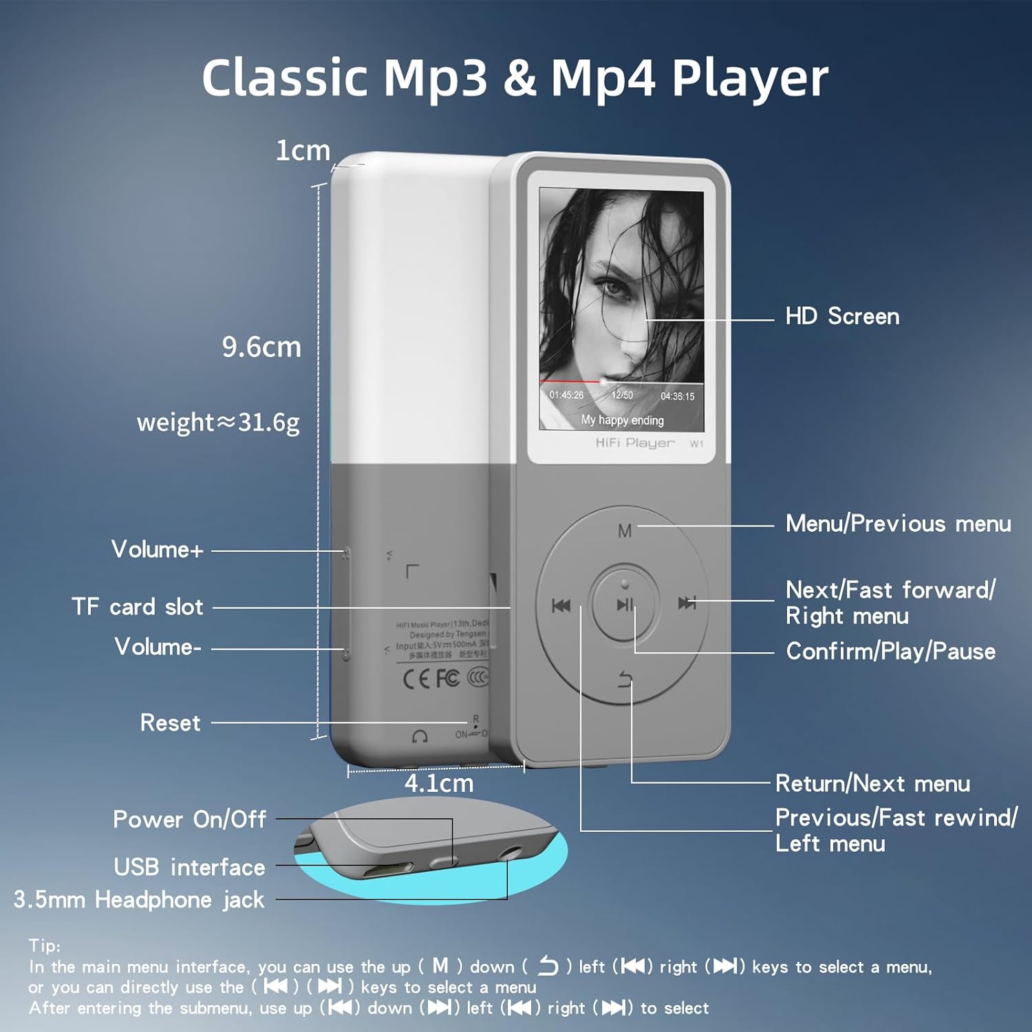 【Hifi sound , Large storage】 Experience immersive high-fidelity sound quality! we have integrated a dac music decoding chip-to provide hifi-level sound enjoyment. Mp3 can store thousands of songs, videos, and other media files with this mp3 player.Additionally, MP3/MP4 players also support expansion with Micro SD cards of up to 128GB(not include 128GB).