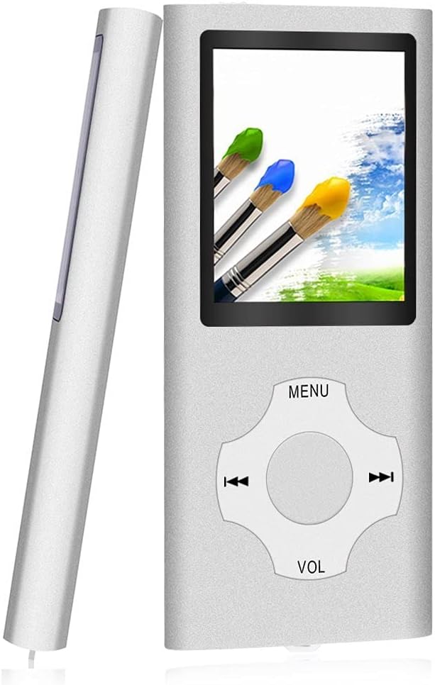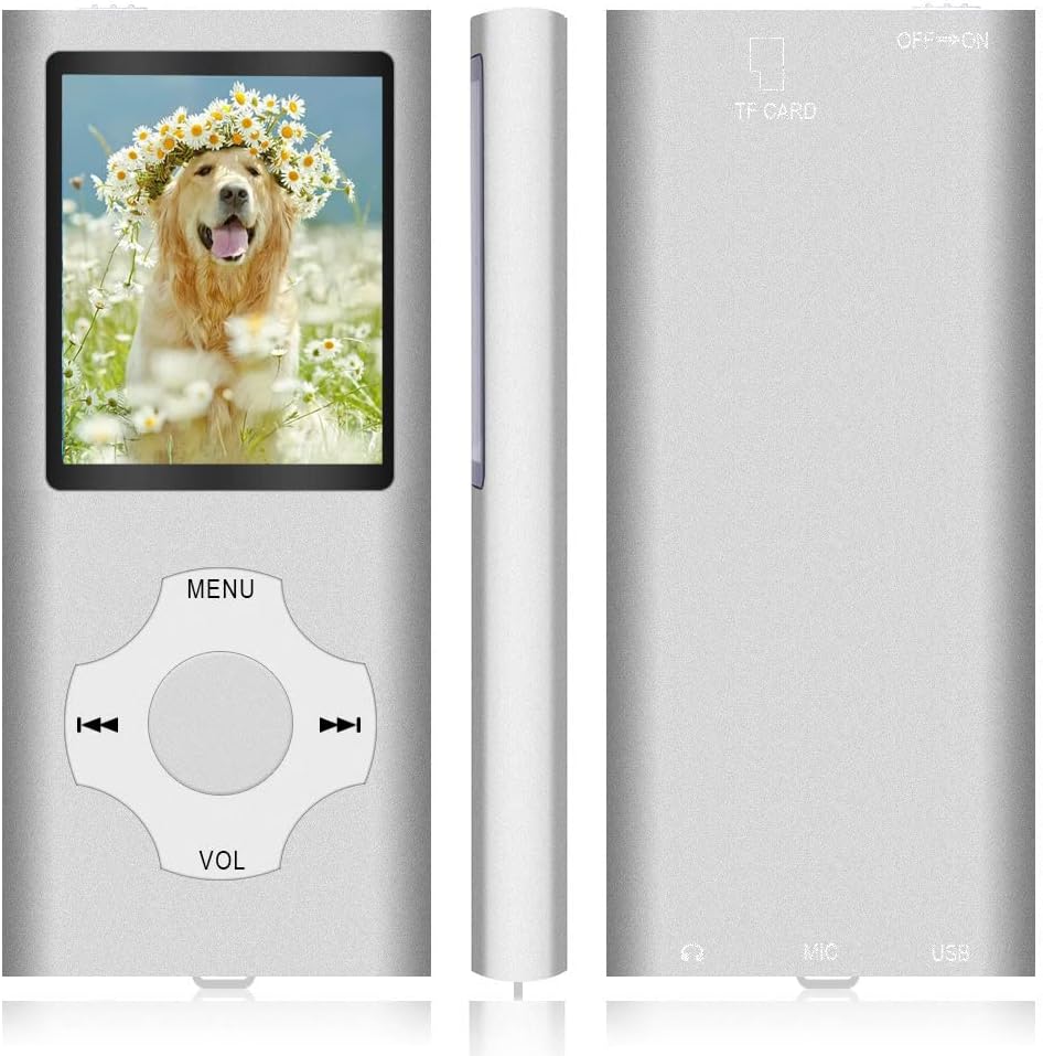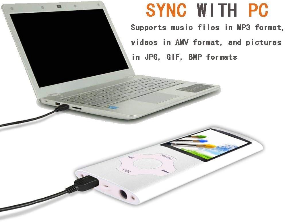 【32GB Large Storage】The portable MP3 player comes with a 16 GB memory SD card and support up to 128GB(not included). Play music with MP3/Voice record/FM Radio/E-book support TXT format/ photo view / video with AMV format.