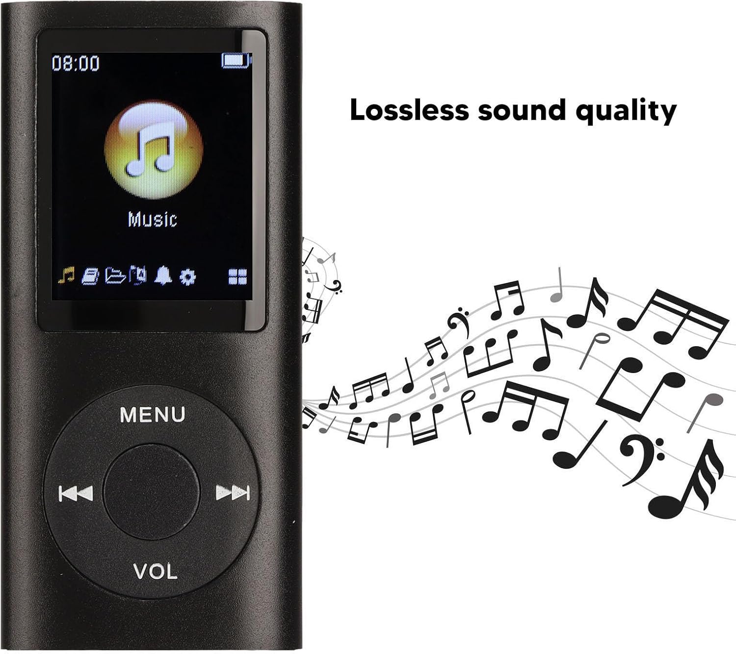 High-Quality Sound : The MP3 Player Stylish Multifunctional Lossless Sound Slim 1.8 Inch LCD Screen Portable MP3 Music Player offers a lossless sound quality for a more immersive and enjoyable listening experience. It supports a wide range of audio formats including MP3, WMA, FLAC, APE, AAC, OGG, and ACELP.