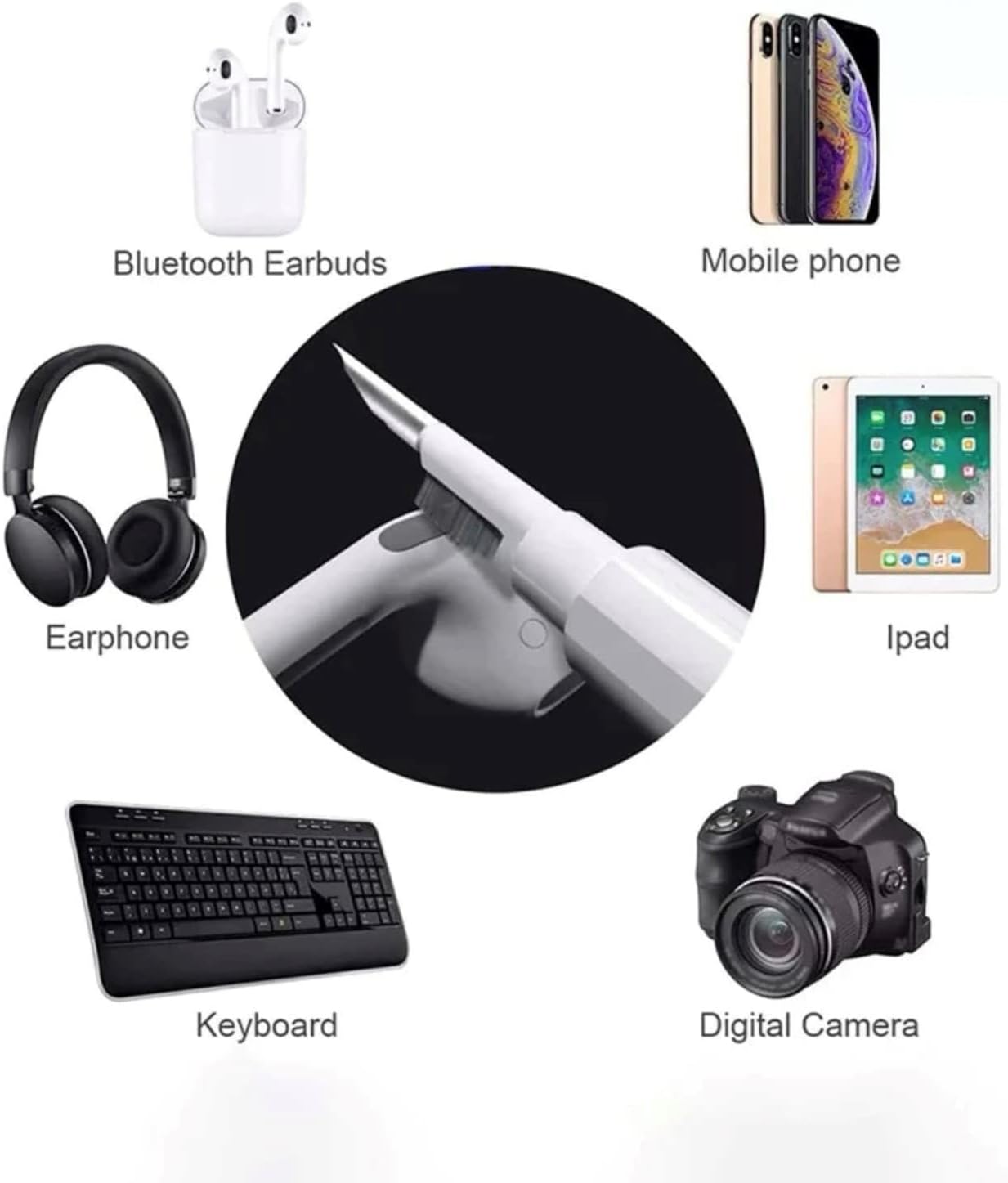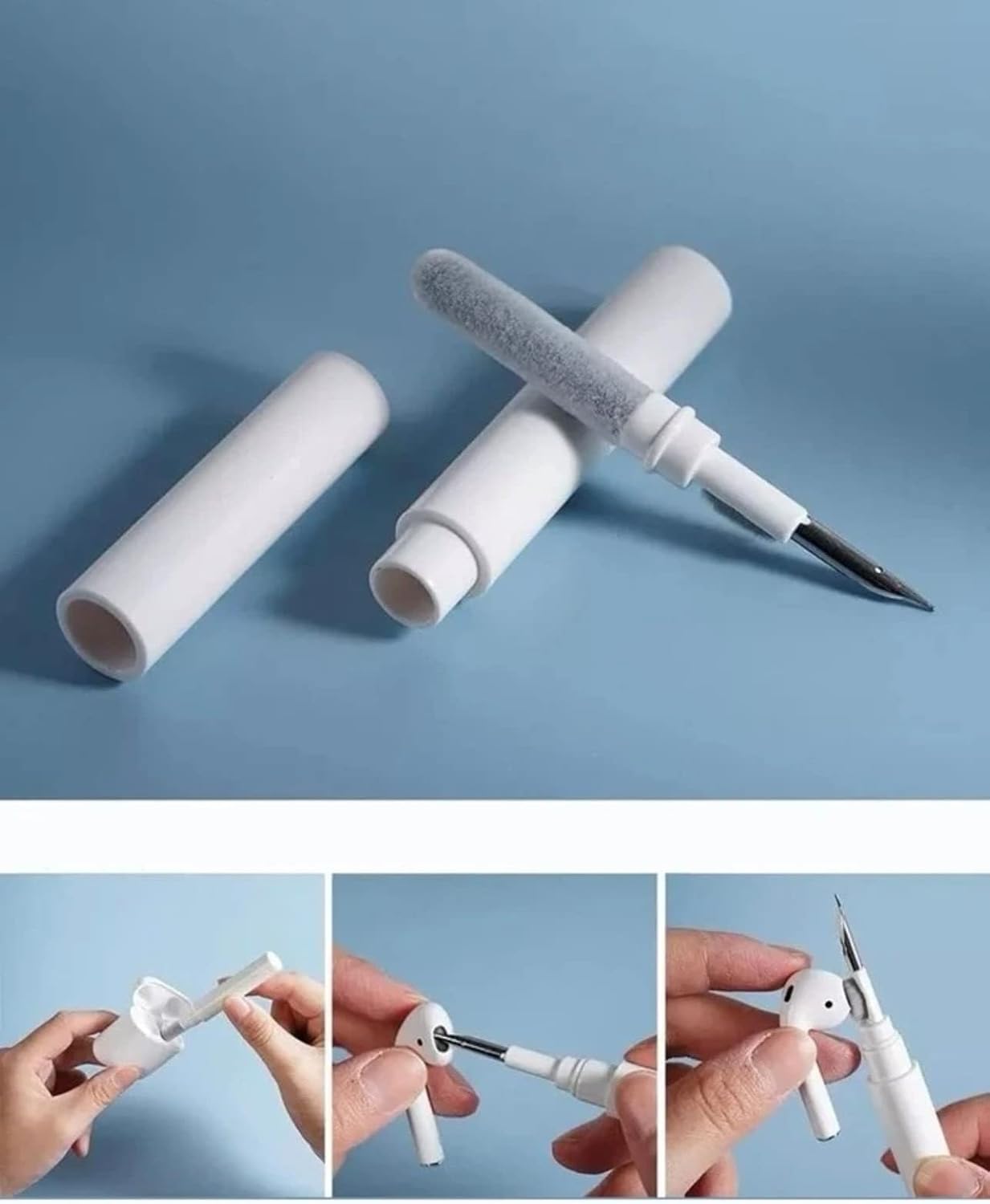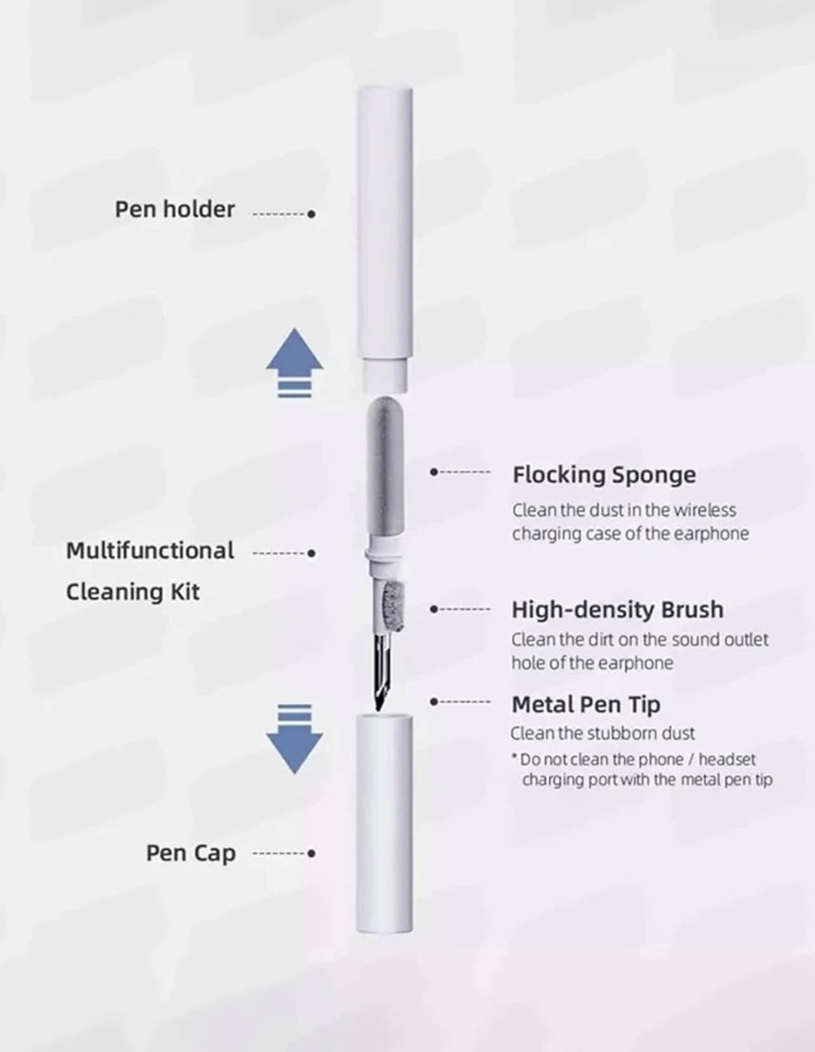 We separated Dual Head Design: Hagibis 3-in-1 earphone cleaning kit with Flocking Sponge, High-density Brush, and Metal Pen Tip; the dual head is hidden to meet various cleaning needs.