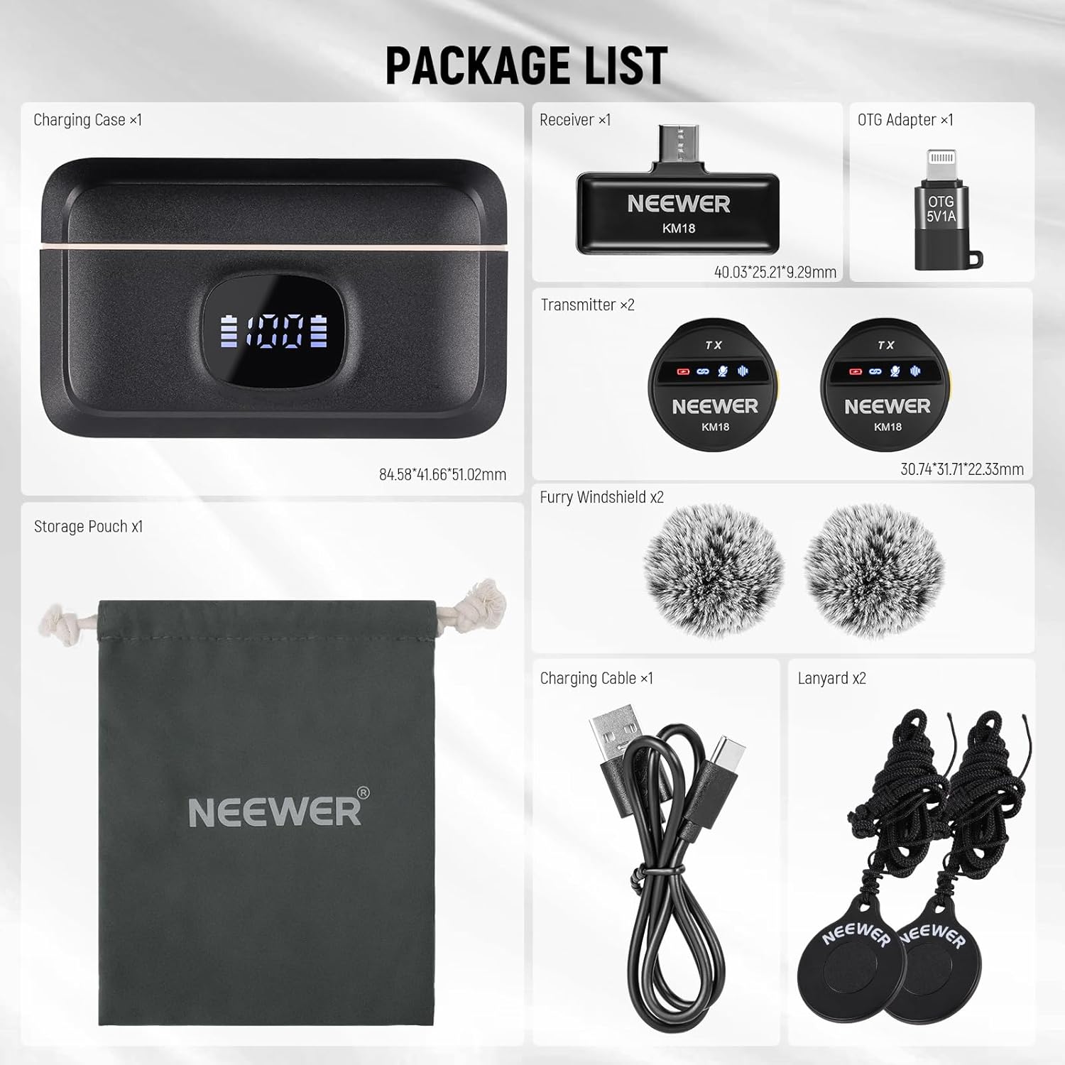 Neewer Wireless Lavalier Microphone for USB C with Charging Case, Compatible with iPhone/Android/PC/Laptop, 48KHz/24Bit Mini Lapel Mic, Noise Canceling 24H Battery for Recording Live Vlog, KM18