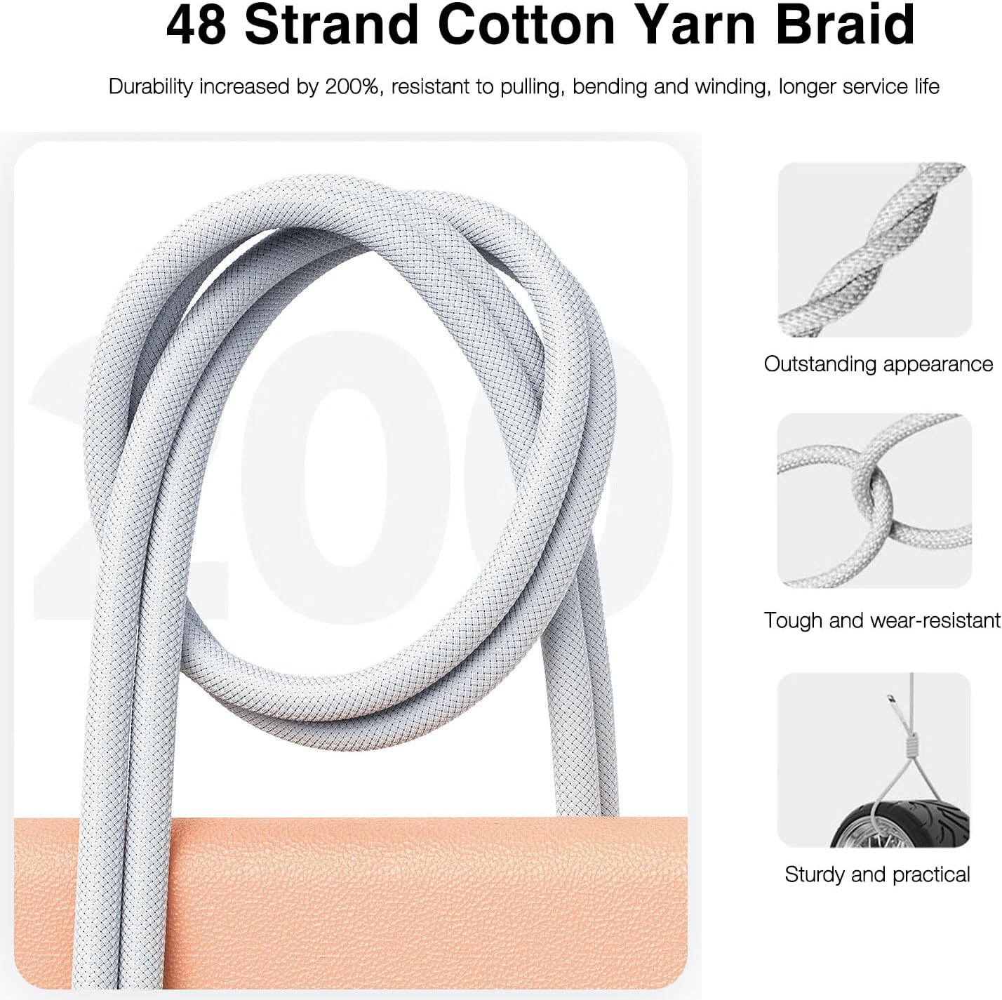 Designed for AirPods Pro(2nd generation). USB C to USB C Woven Cable.